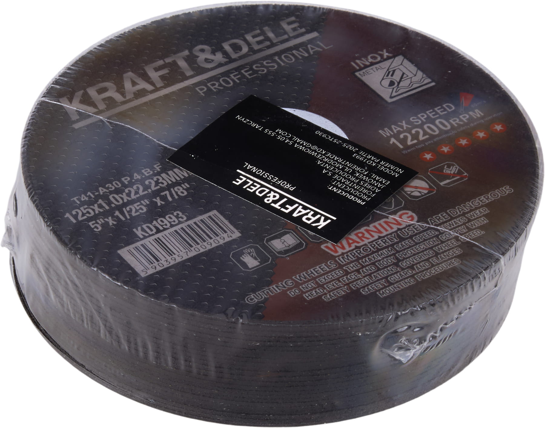 Tarcza tnąca typu T41 przeznaczona do szlifierek kątowych ze wrzecionem 22,23 mm. Wykonana ze ścierniwa z tlenku glinu wiązanego żywicą syntetyczną, wzmocniona siatką z włókna szklanego. Sprzedawana wyłącznie w opakowaniu zbiorczym 25 sztuk.
