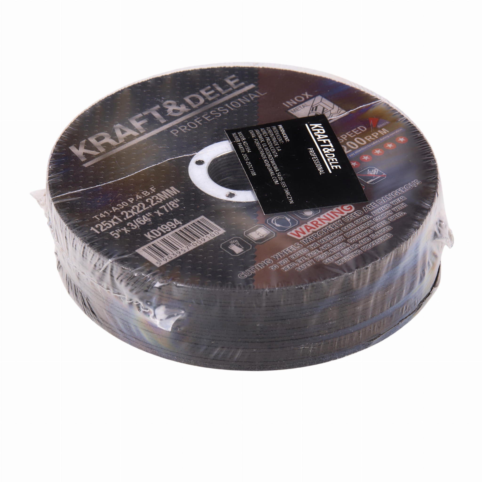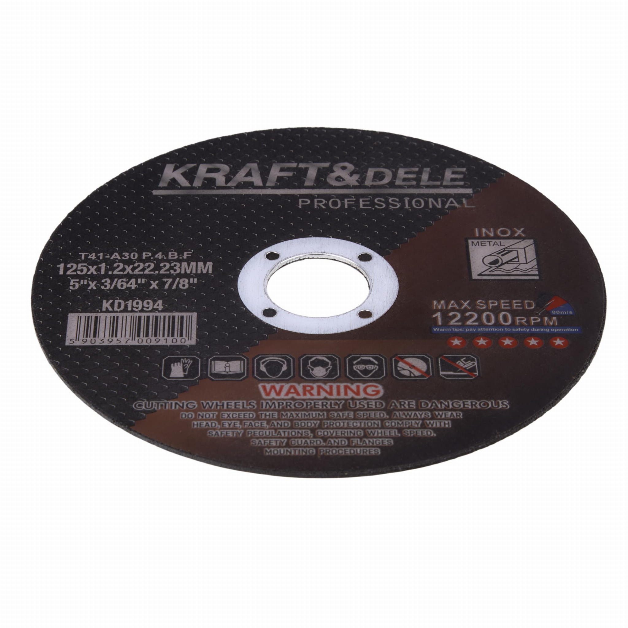 Tarcza tnąca przeznaczona do szlifierek kątowych z tarczą 125 mm. Wykonana z ziarna ściernego z tlenku glinu, wiązanego żywicą syntetyczną i wzmocnionego siatką z włókna szklanego. Produkt sprzedawany w zestawie 25 sztuk.