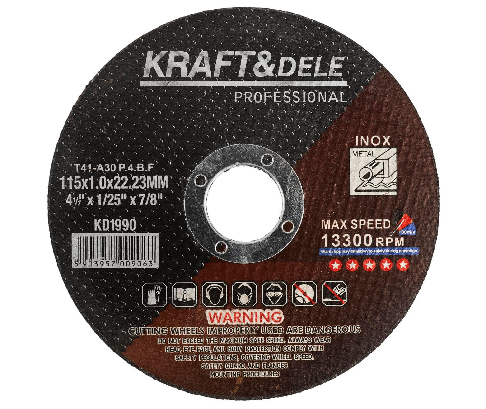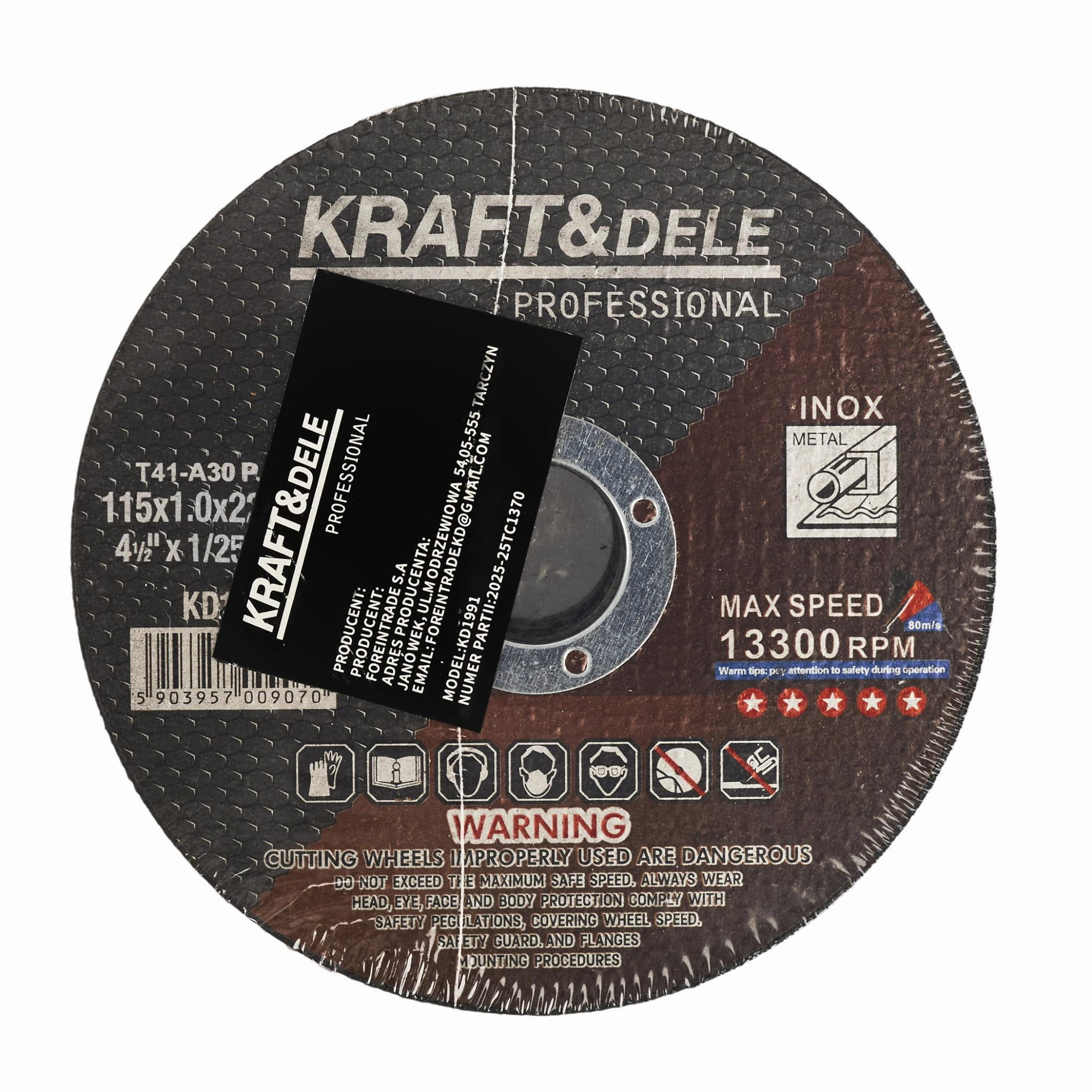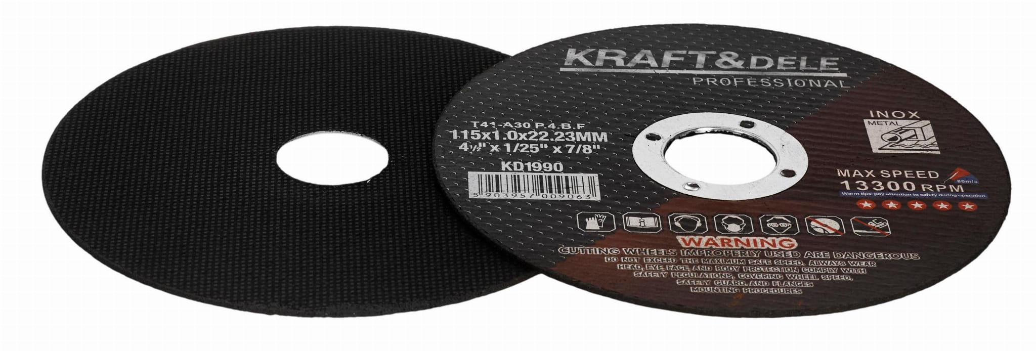 KD1990 to tarcza tnąca do szlifierek kątowych, przeznaczona do cięcia elementów stalowych i metalowych. Cienki profil 1 mm ogranicza ilość usuwanego materiału i zmniejsza nagrzewanie strefy cięcia. Sprzedawana w opakowaniach zbiorczych po 25 sztuk.