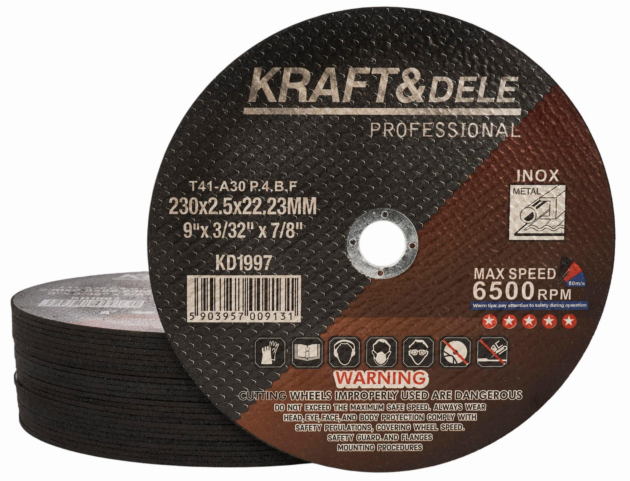 Tarcza ścierna typu T41 przeznaczona do cięcia metalu, stali, rur i profili w szlifierkach kątowych o średnicy tarczy 230 mm. Sprzedawana w opakowaniach zbiorczych po 25 sztuk — rozwiązanie dla warsztatów i firm wykonujących prace ślusarskie lub budowlane w większym zakresie.