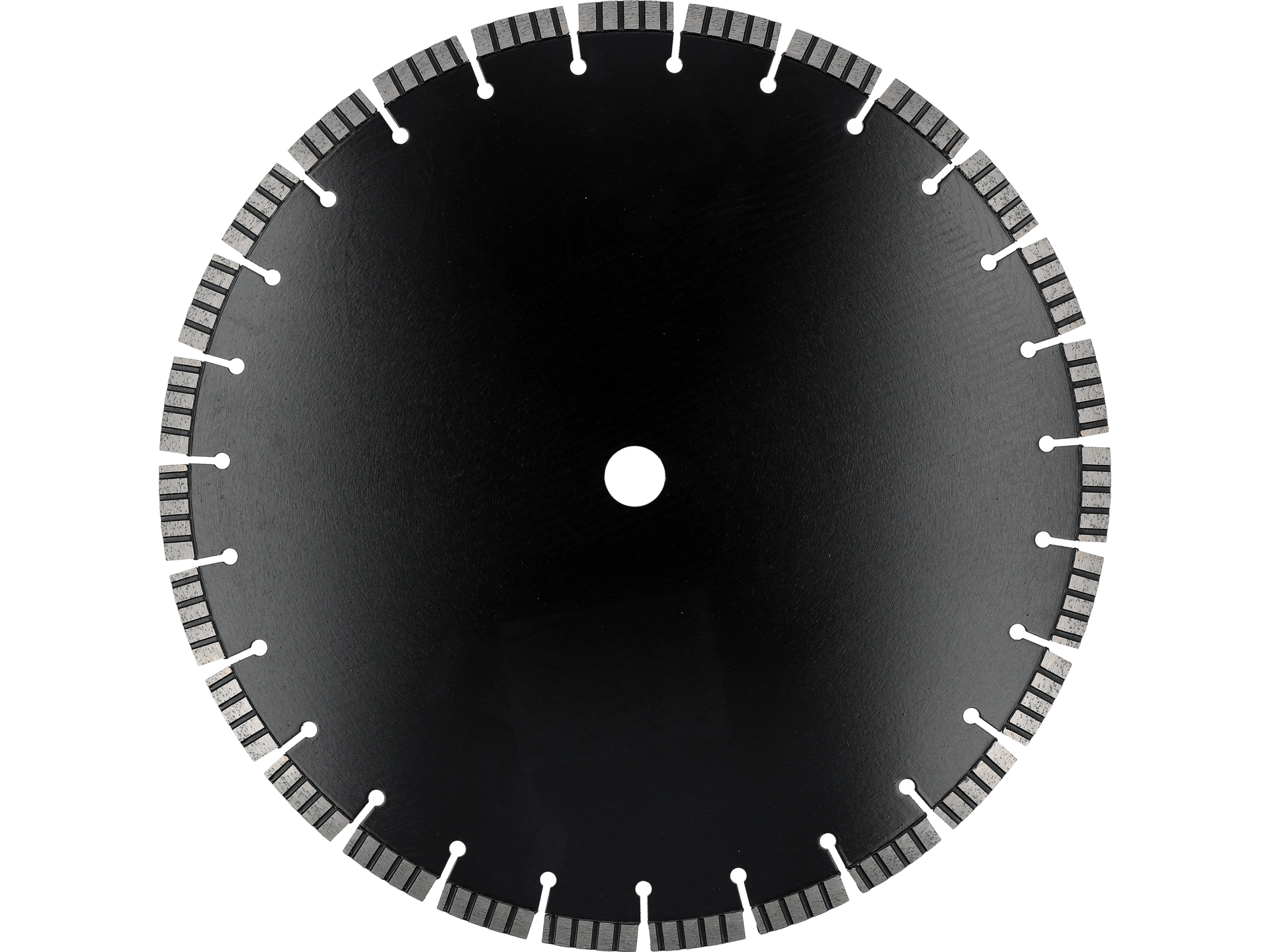 Segmenty tnące o wysokości 12 mm i grubości 3,4 mm wykonane ze stali 65Mn. Większa wysokość segmentu oznacza dłuższą żywotność tarczy — po zużyciu górnej warstwy diamentów, kolejne warstwy nadal zachowują zdolność cięcia.
