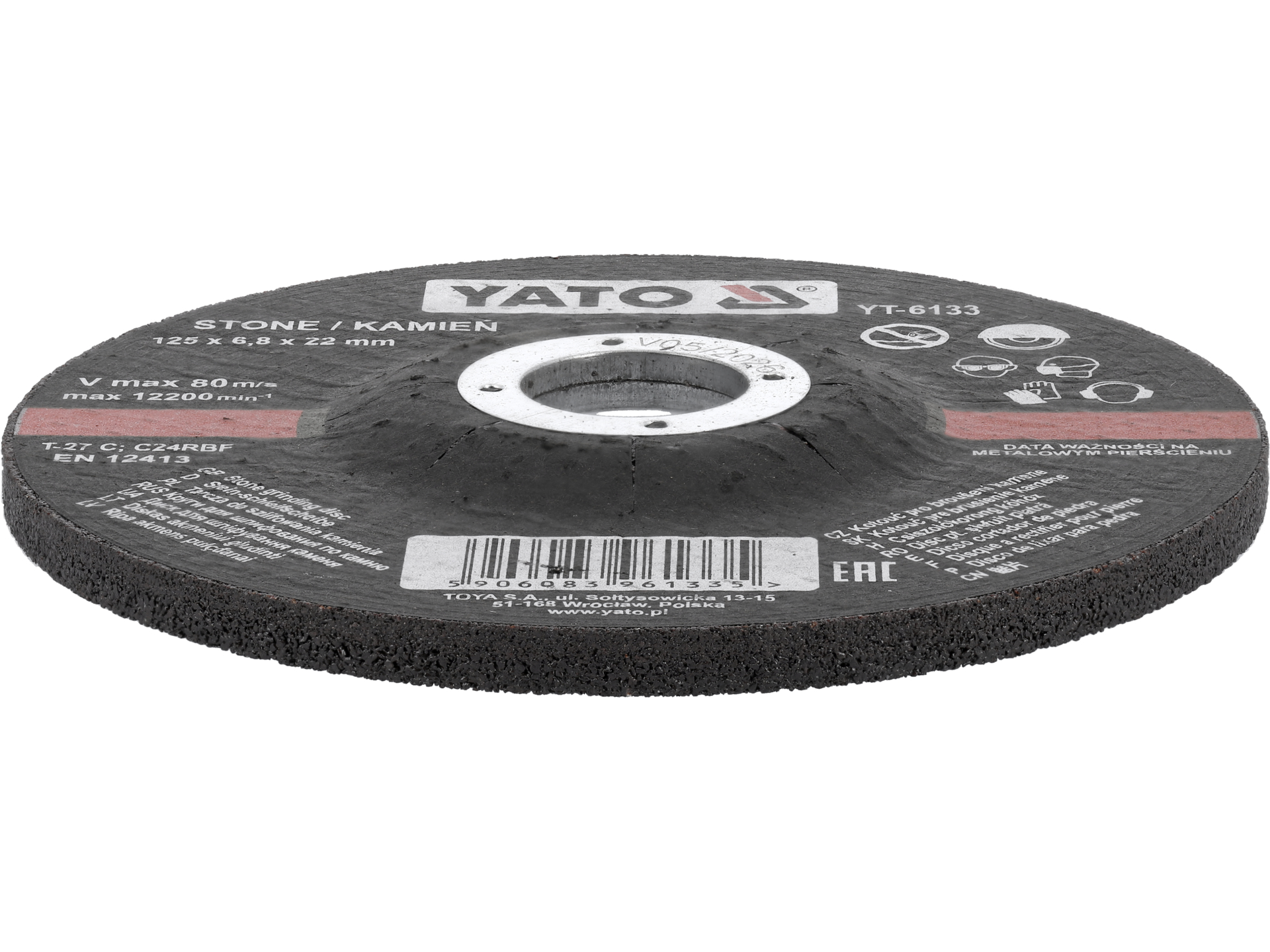 Tarcza szlifierska korundowa przeznaczona do obróbki materiałów kamiennych w szlifierkach kątowych 125 mm. Wypukły profil o grubości 6,8 mm zapewnia efektywne usuwanie materiału przy szlifowaniu betonu, kamienia naturalnego i cegły.