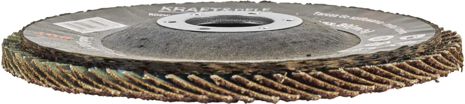 Zachodzące na siebie listki ściernicy amortyzują nacisk narzędzia na podłoże, co ogranicza wibracje i zmniejsza ryzyko przegrzania obrabianego materiału. Zużywające się stopniowo listki odsłaniają kolejne warstwy ścierniwa, utrzymując skuteczność przez cały okres eksploatacji tarczy.