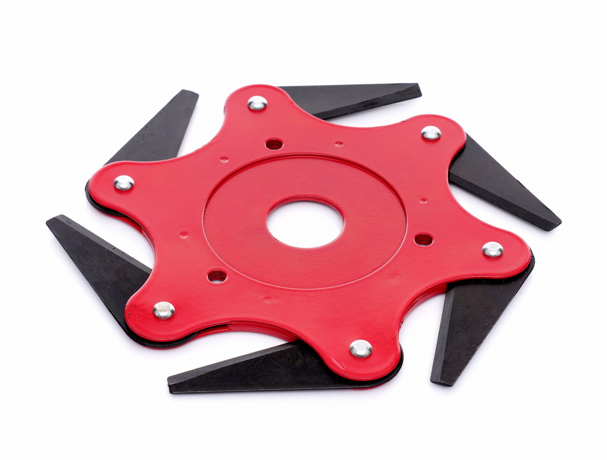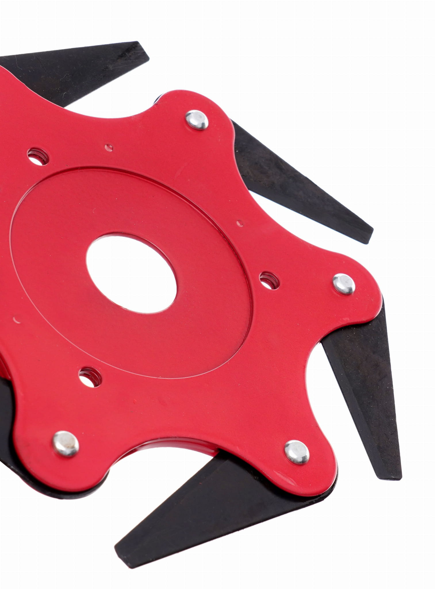 Tarcza wykonana ze stali zapewnia odporność na odkształcenia podczas pracy w trudnym terenie — przy gęstej trawie, twardych łodygach oraz cienkich gałązkach. Materiał przekłada się na trwałość elementu w warunkach intensywnej eksploatacji.