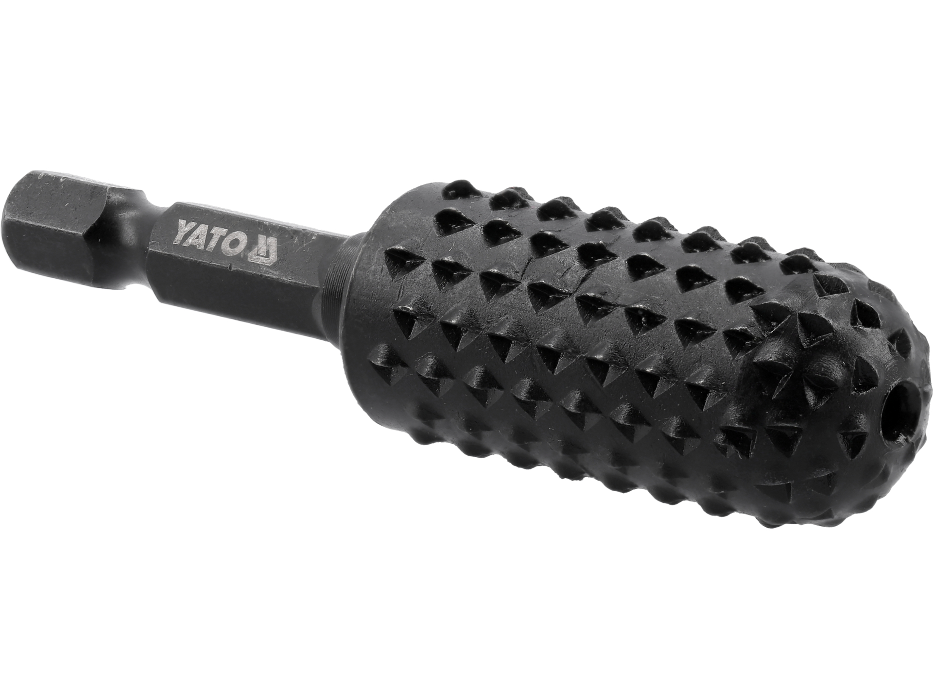 Frez stożkowy do obróbki drewna z uchwytem sześciokątnym 1/4", przeznaczony do powiększania otworów, fazowania krawędzi oraz spasowywania złączy ciesielskich. Wykonany ze stali węglowej #45 z oksydowanym wykończeniem.