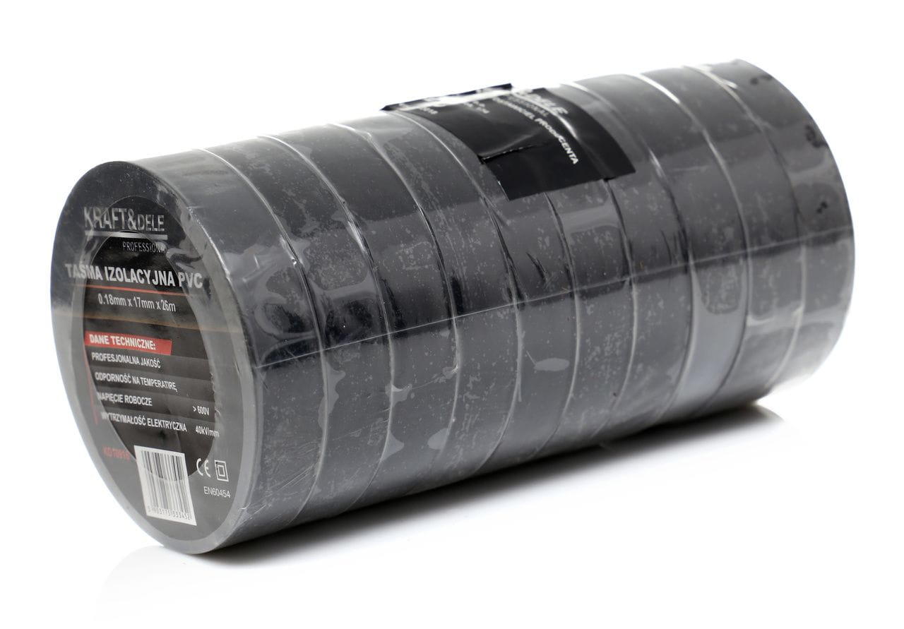 Taśma izolacyjna z folii PVC przeznaczona do izolowania połączeń elektrycznych, zabezpieczania przewodów oraz prac instalacyjnych. Napięcie robocze powyżej 600 V pozwala na stosowanie jej w typowych instalacjach elektrycznych niskiego napięcia. W zestawie 10 rolek, każda o długości 25 m.