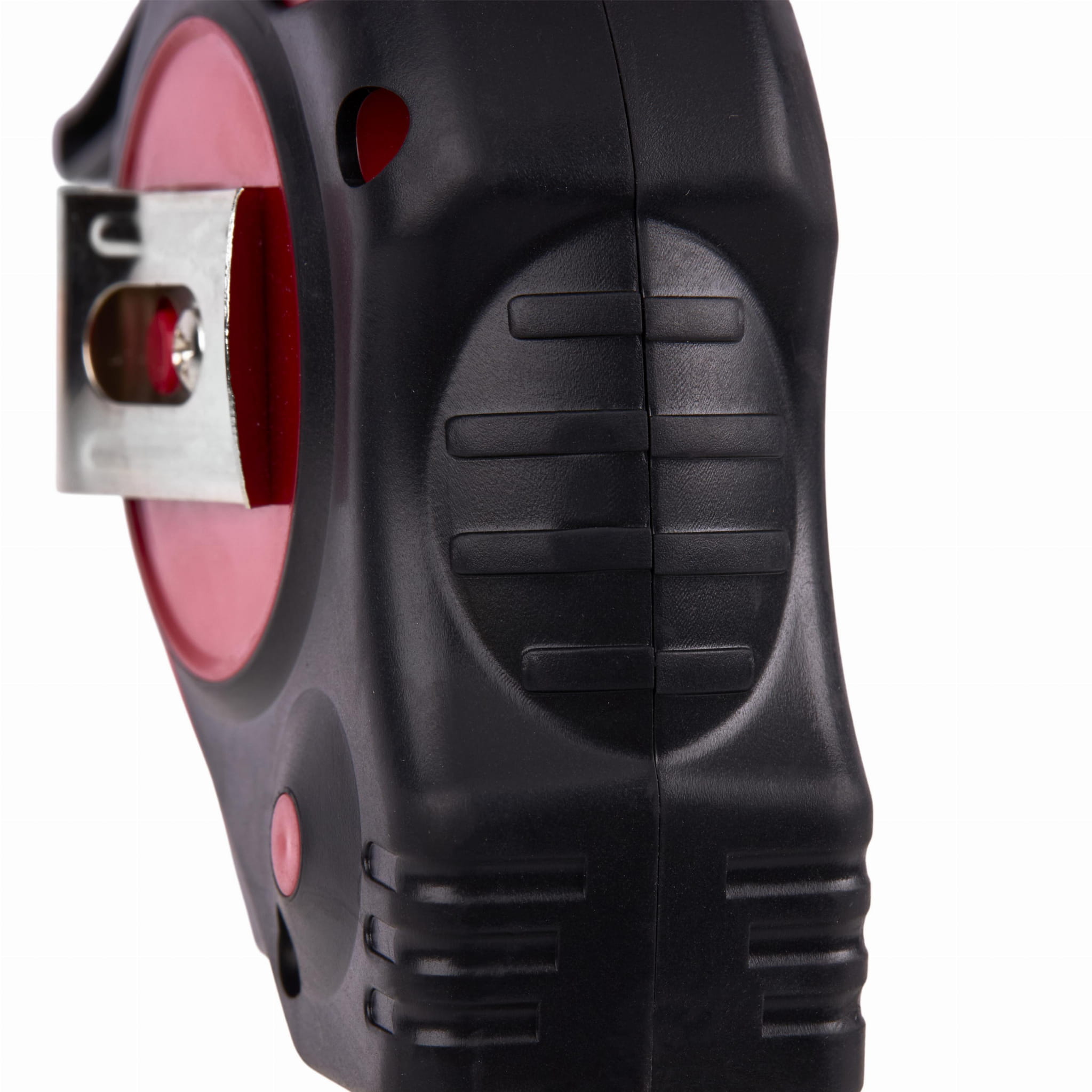 Szersza taśma (16 mm) jest bardziej sztywna w poziomie niż węższe modele, co umożliwia wysunięcie jej na większą odległość bez podparcia. Ułatwia to odczyt skali bez konieczności zbliżania się do mierzonej powierzchni.