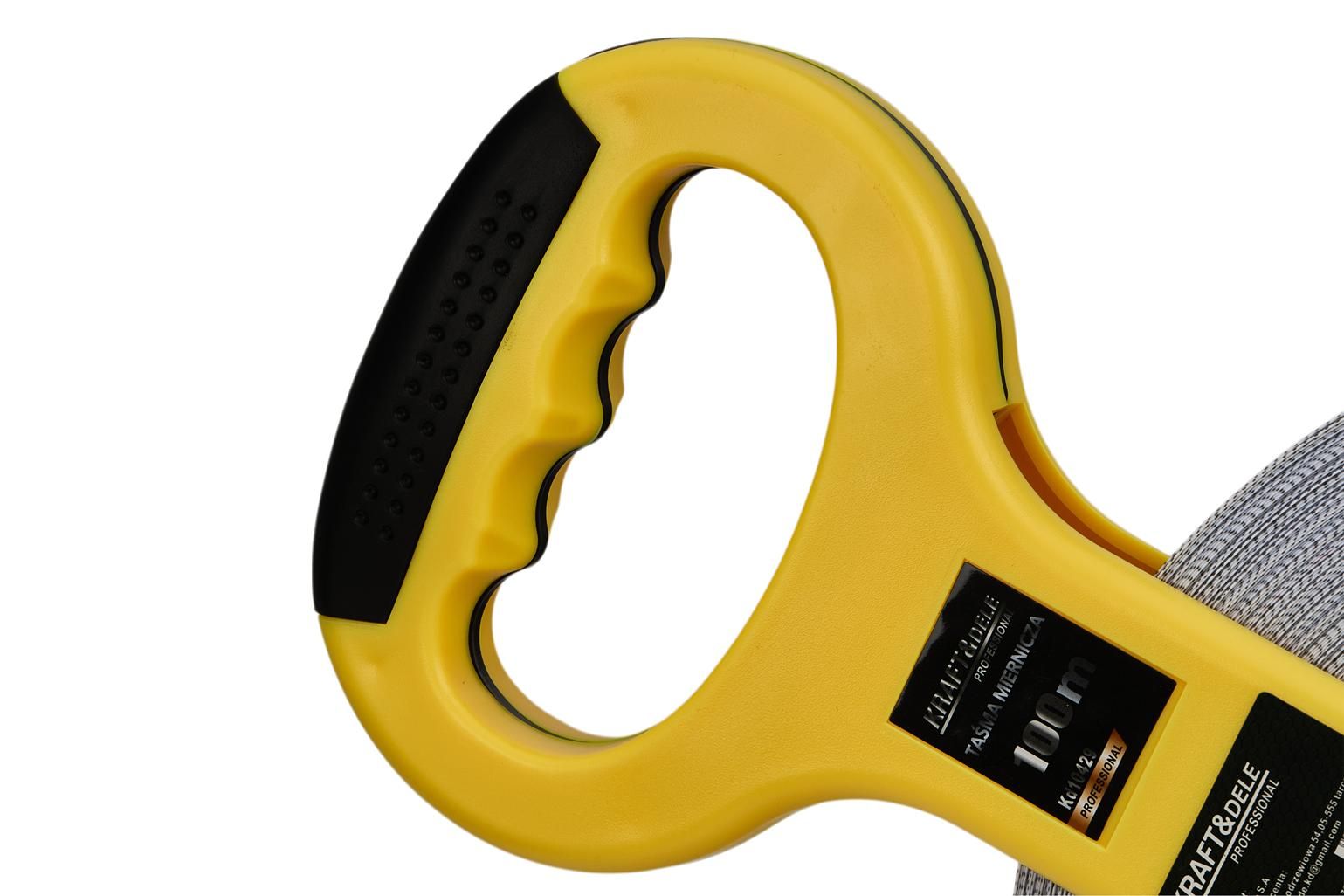 TAŚMA MIERNICZA FIBERGLASS 100M KD10429 to praktyczna taśma miernicza do szybkich pomiarów na budowie i w terenie. Model KD10429 ułatwia pracę jednoosobową dzięki rozwiązaniom, które stabilizują koniec taśmy i poprawiają kontrolę rozwijania.
