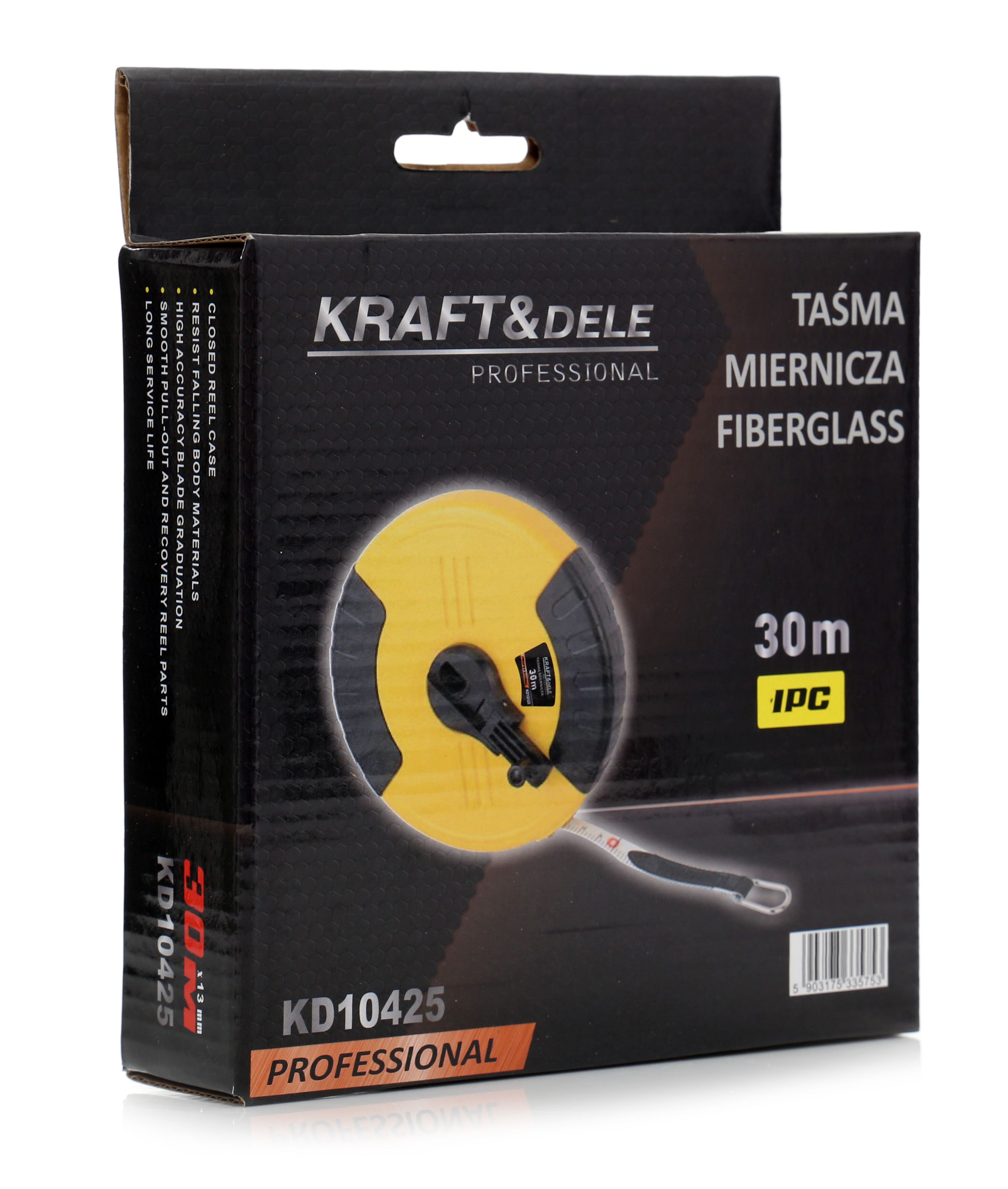 TAŚMA MIERNICZA FIBERGLASS 30m / KD10425 / KRAFT&DELE to profesjonalna taśma miernicza o długości 30 m, zaprojektowana z myślą o wygodnym pomiarze w warsztacie i w terenie. Jeśli zależy Ci na pewnym chwycie i narzędziu do regularnego użytku, model KD10425 będzie rozsądnym wyborem do codziennych zadań.