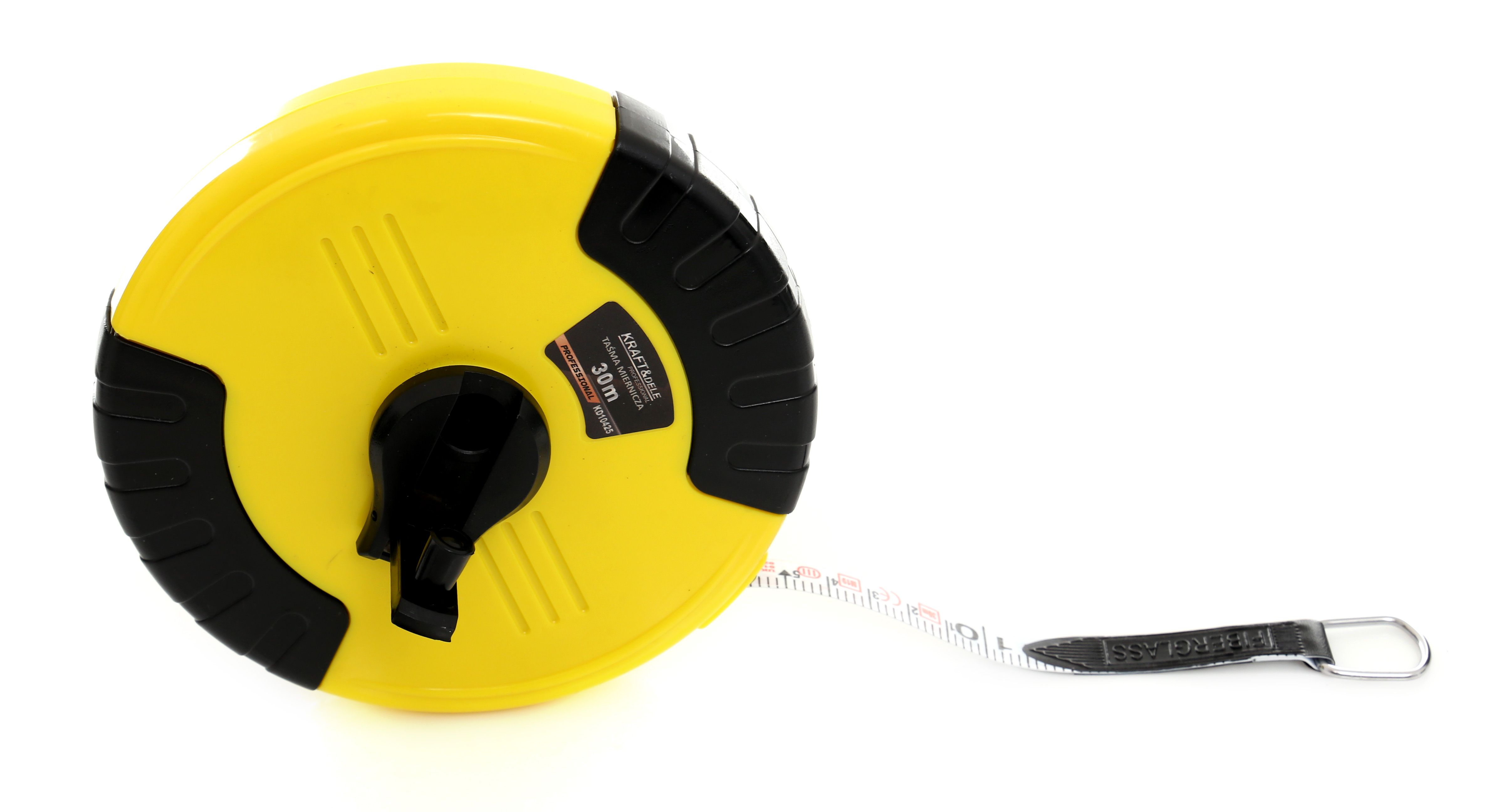 TAŚMA MIERNICZA FIBERGLASS 30m / KD10425 / KRAFT&DELE to taśma miernicza, którą łatwo włączyć do podstawowego zestawu pomiarowego na co dzień.