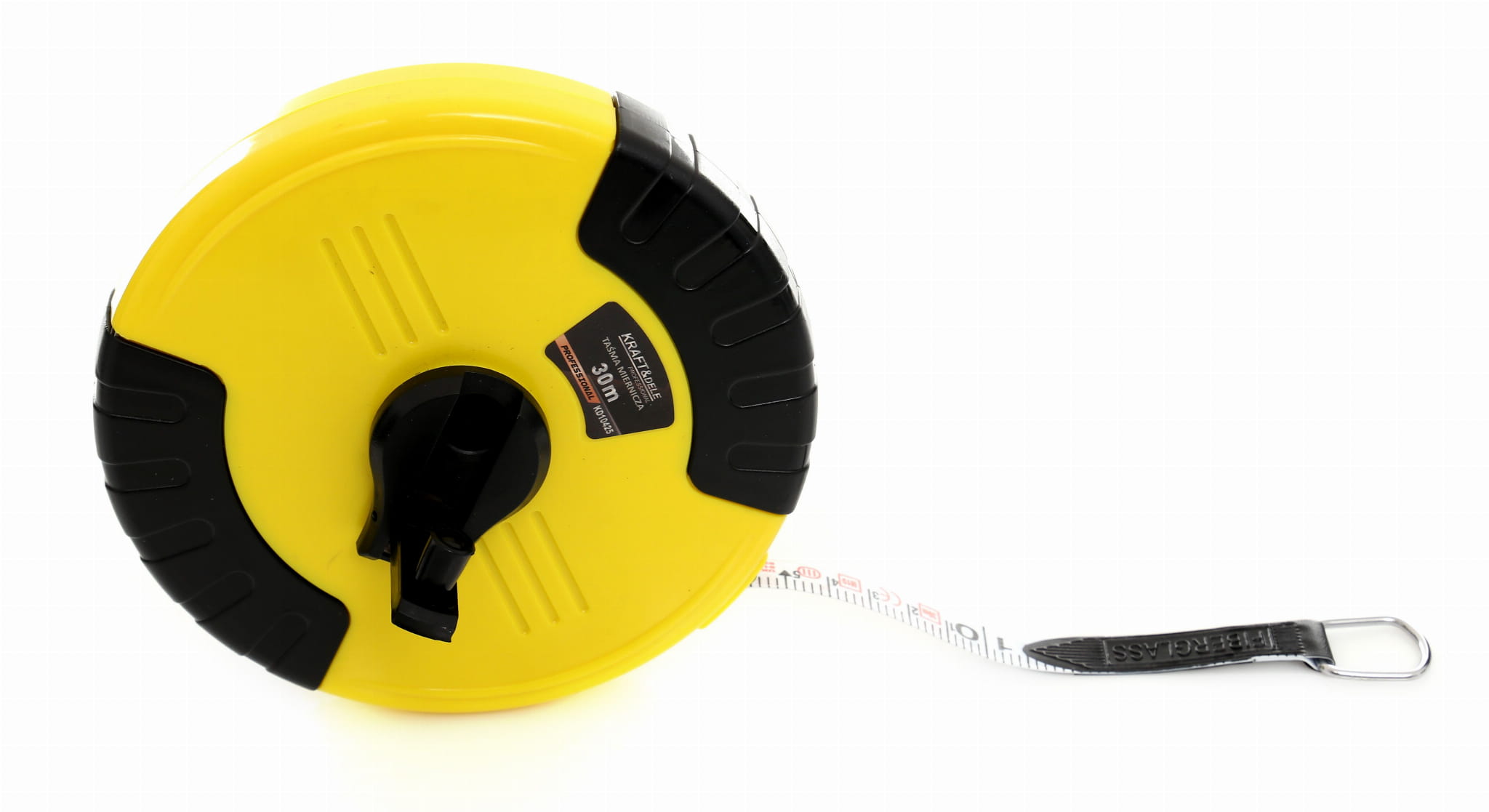 Taśma miernicza z taśmą wykonaną z włókna szklanego (fiberglass) przeznaczona do pomiarów liniowych na dużych dystansach. Zakres 50 metrów pozwala na jednoprzebiegowy pomiar w budownictwie, geodezji i pracach terenowych bez konieczności wielokrotnego przesuwania narzędzia.