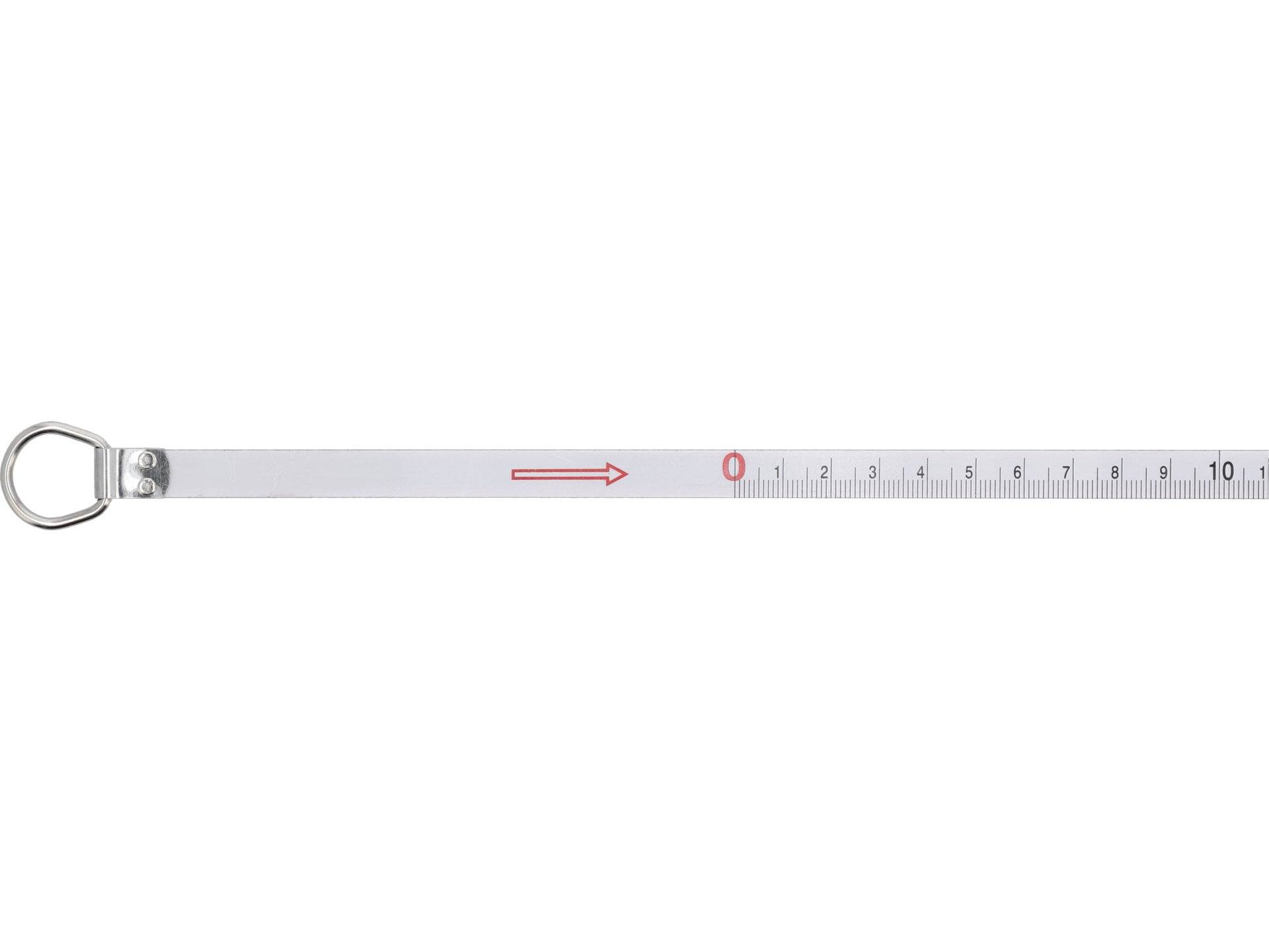 Oczko na końcu taśmy pozwala na zaczepienie o krawędź mierzonego elementu, co umożliwia prowadzenie pomiarów przez jedną osobę. Metalowe wykonanie zapewnia trwałość punktu zaczepowego podczas intensywnego użytkowania.