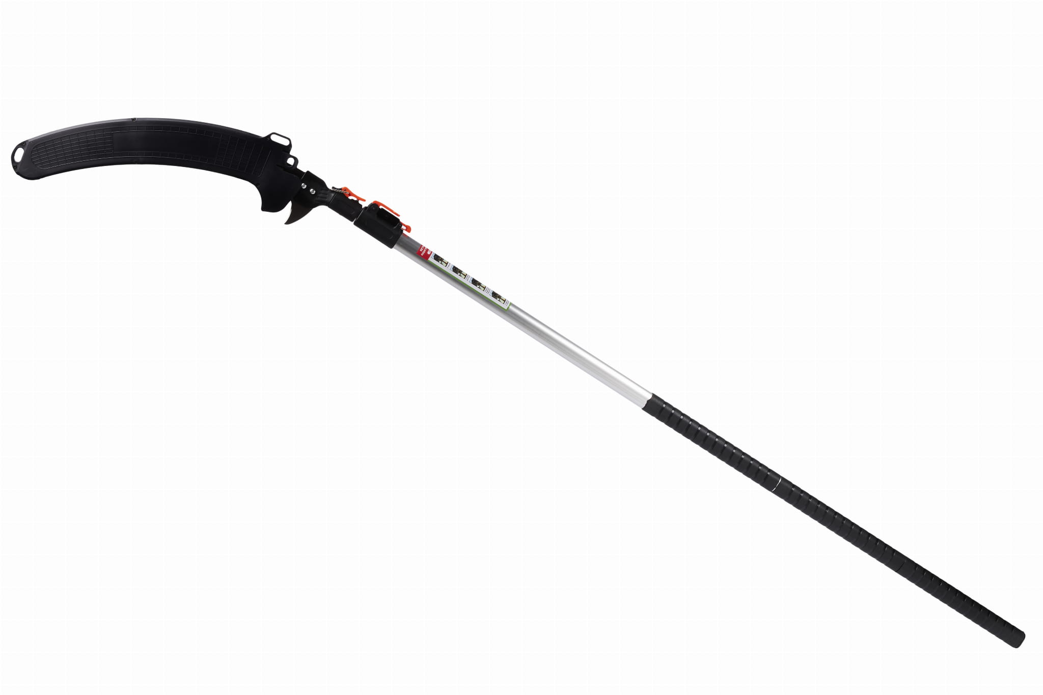 Trzonek wykonany z aluminium reguluje się w zakresie od 135 do 300 cm. Aluminium zapewnia niską wagę całego narzędzia (1,78 kg) przy zachowaniu sztywności podczas pracy. Regulacja długości pozwala dopasować zasięg do aktualnych potrzeb — od pracy przy niskich konarach po gałęzie na znacznej wysokości.