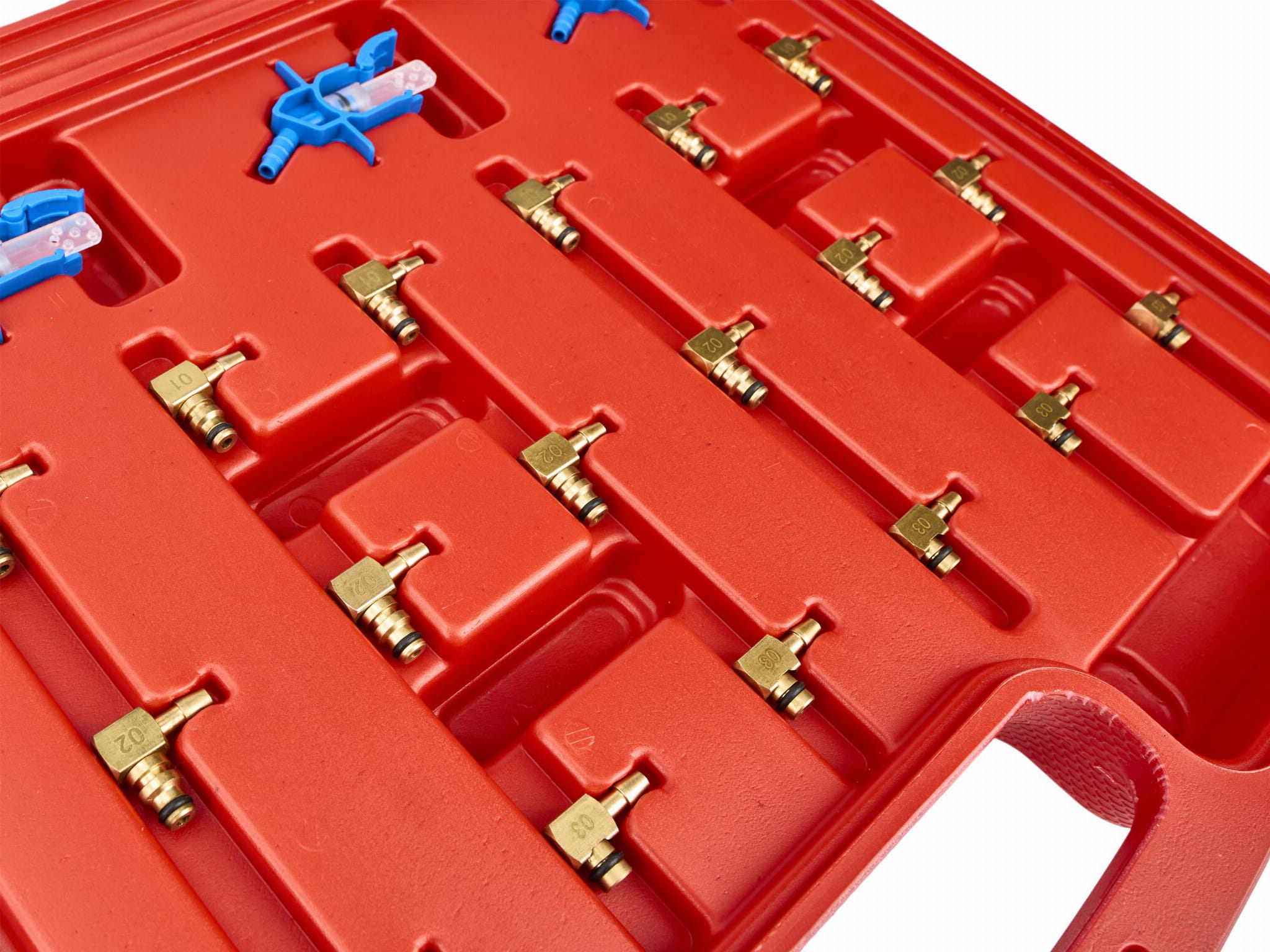 Zestaw zawiera złączki dedykowane dla czterech głównych producentów układów Common Rail: Bosch, Siemens, Denso i Delphi. Przed zastosowaniem należy zidentyfikować producenta pompy i wtryskiwaczy zamontowanych w diagnozowanym pojeździe.