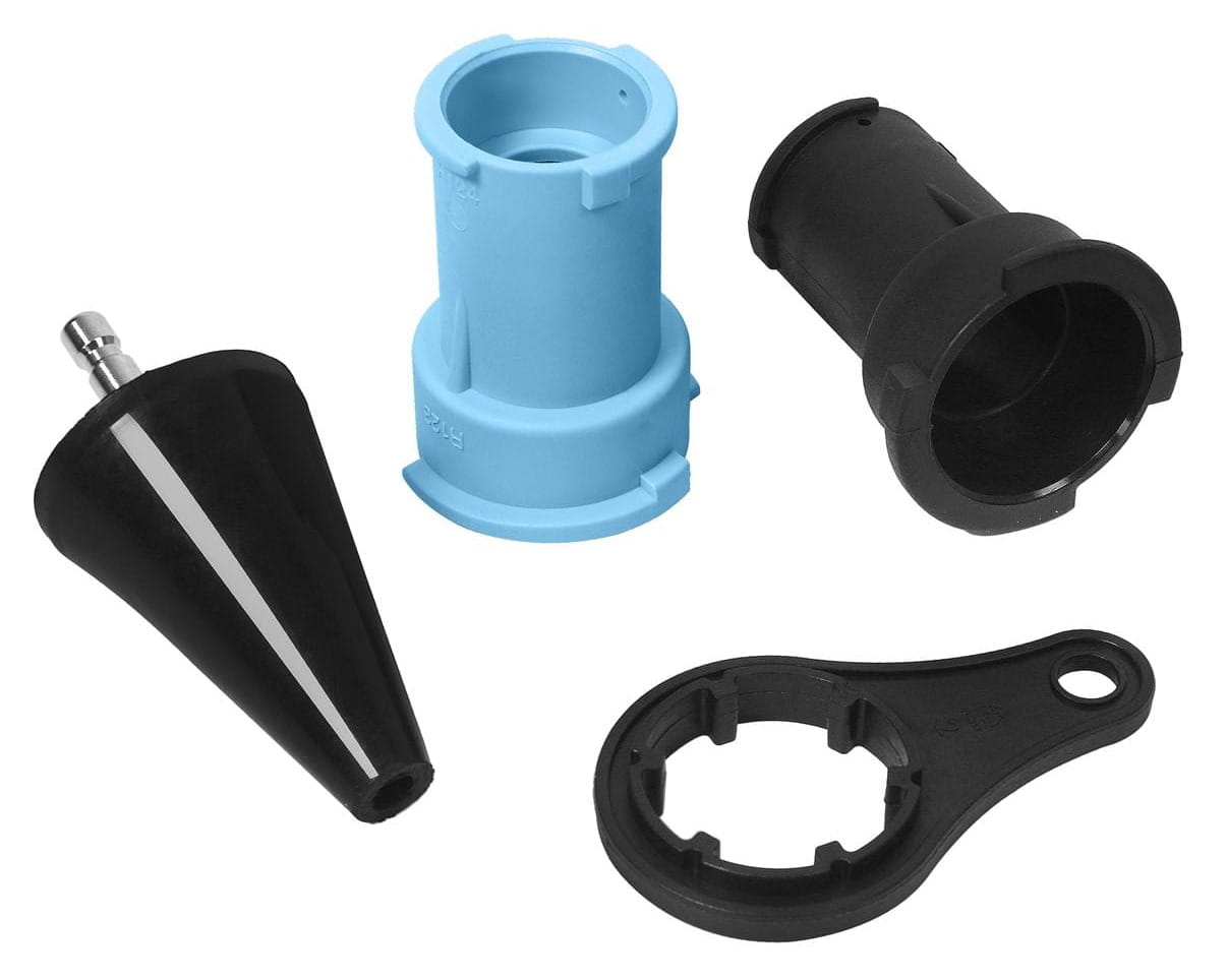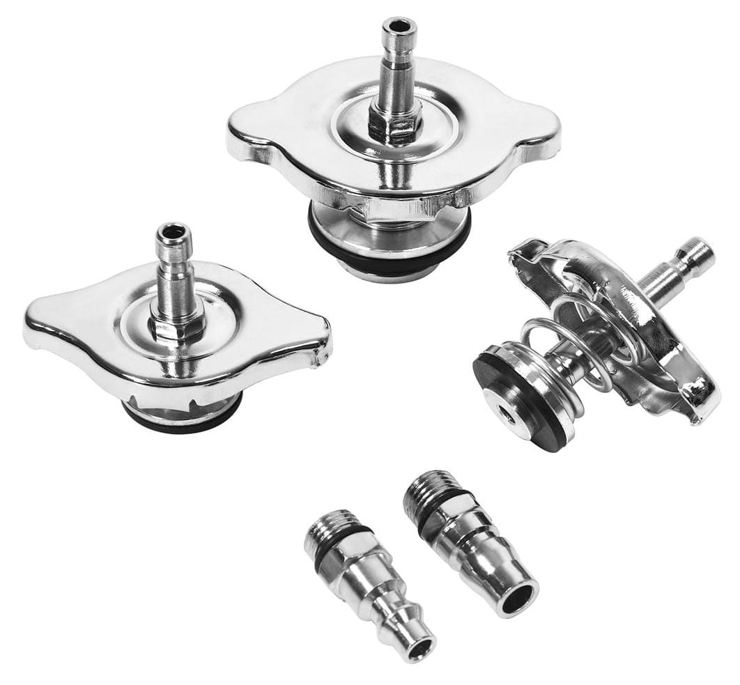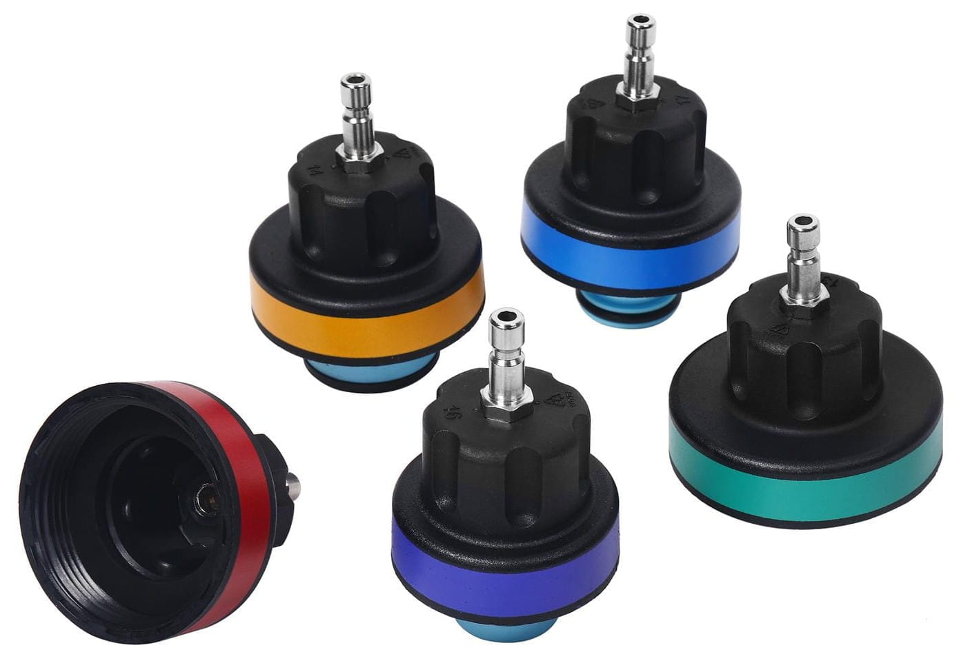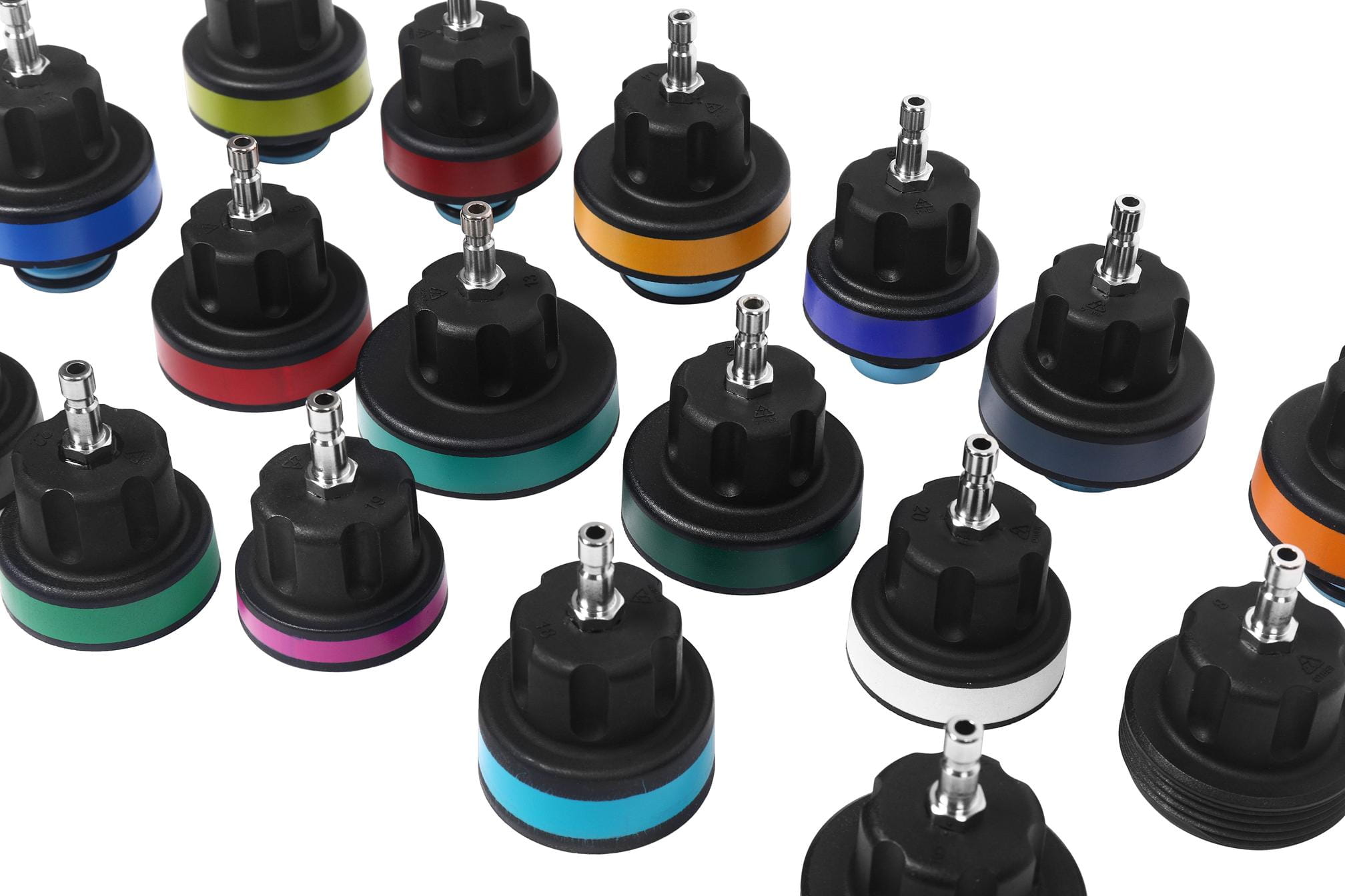 Każdy adapter oznaczono kolorem i numerem, co ułatwia dobór właściwego elementu do konkretnego modelu pojazdu. Adaptery wykonano z materiałów odpornych na działanie glikolu i innych płynów eksploatacyjnych. Zestaw obejmuje rozmiary pasujące do samochodów europejskich, japońskich i amerykańskich.