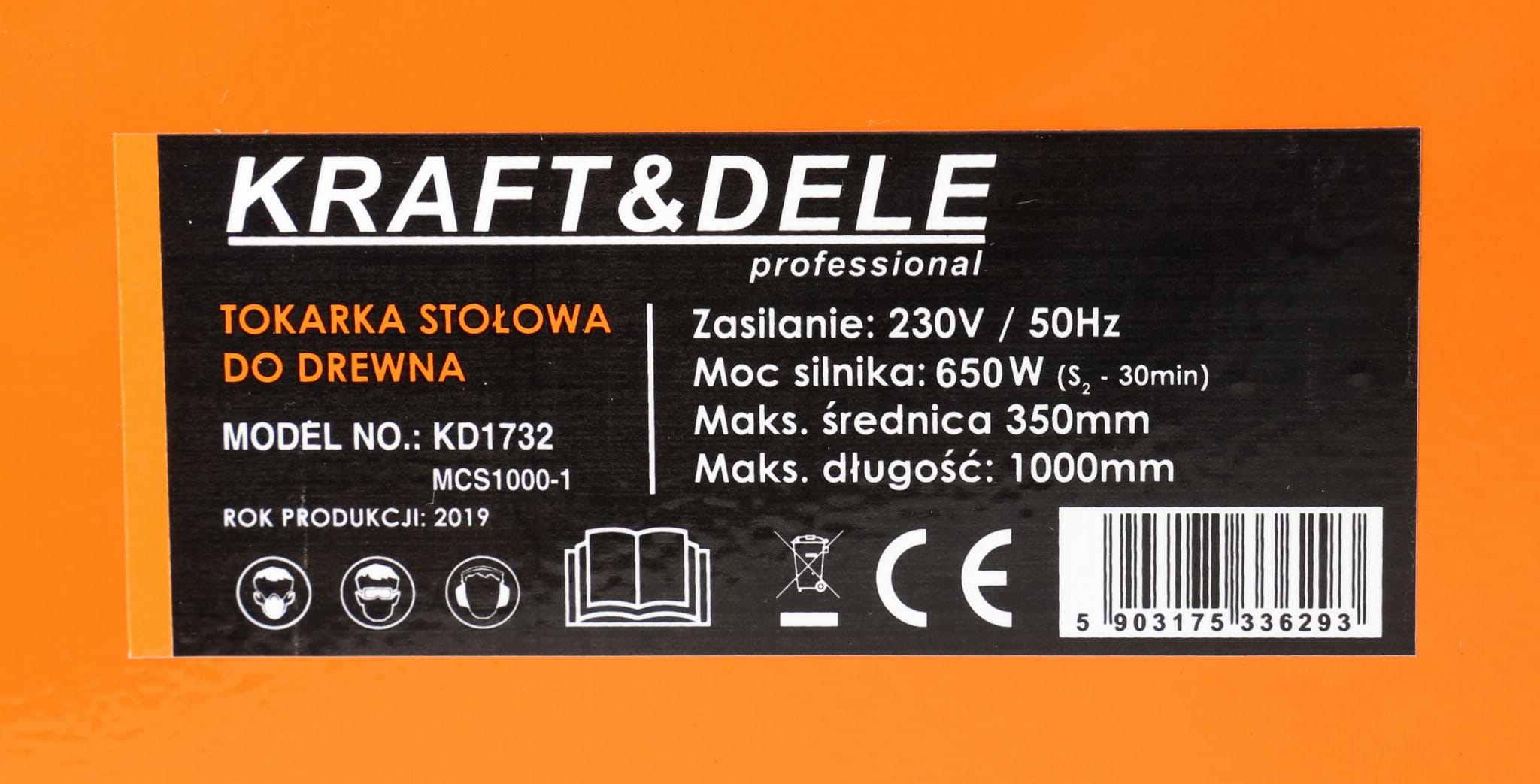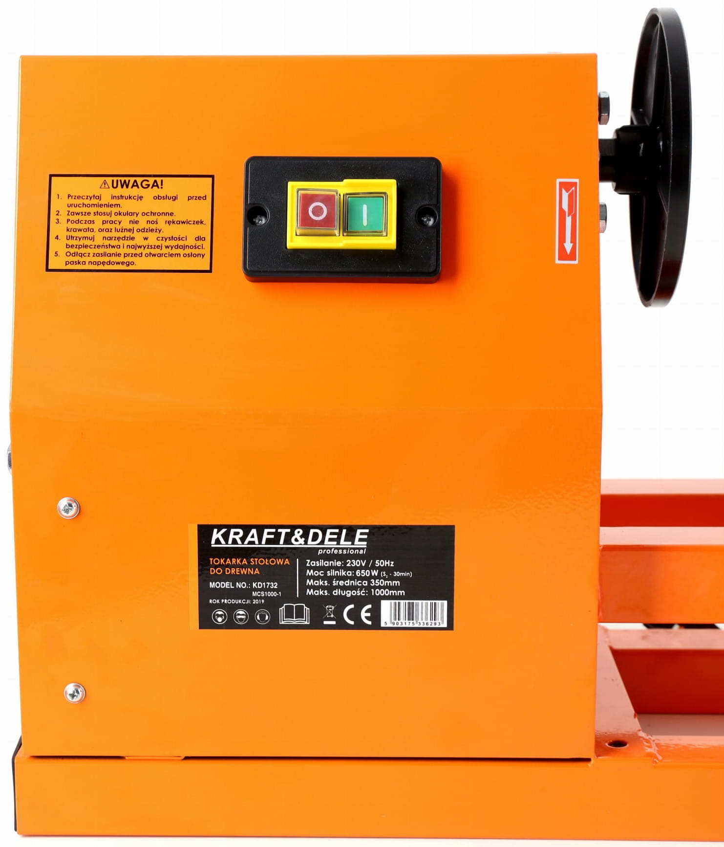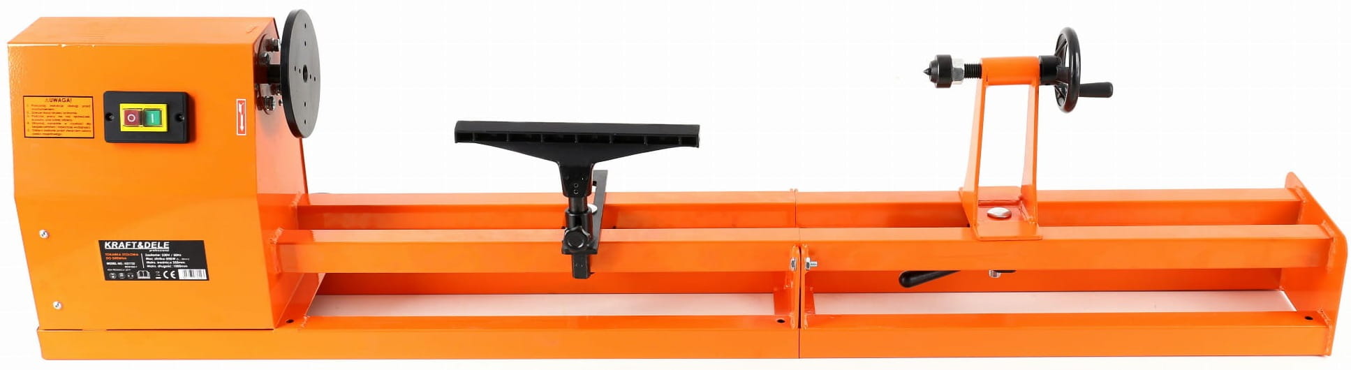 Maksymalna średnica toczenia 350 mm pozwala na obróbkę mis, talerzy i innych okrągłych elementów o znacznych gabarytach. Rozstaw kłów wynoszący 1000 mm umożliwia toczenie wrzecion, nóg mebli, trzonków narzędzi oraz innych elementów podłużnych bez konieczności skracania materiału.