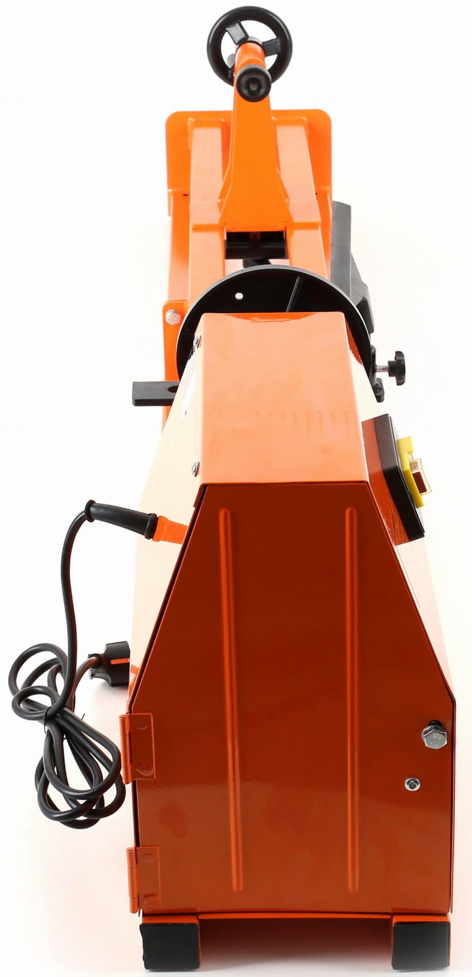 Wzmocniona rama zapewnia ograniczenie drgań podczas pracy, co bezpośrednio przekłada się na jakość powierzchni toczonego elementu i bezpieczeństwo operatora. Waga 24 kg przy wymiarach 895 × 230 × 380 mm oznacza, że urządzenie jest wystarczająco masywne, by pracować stabilnie, a jednocześnie możliwe do przeniesienia przez jedną osobę.