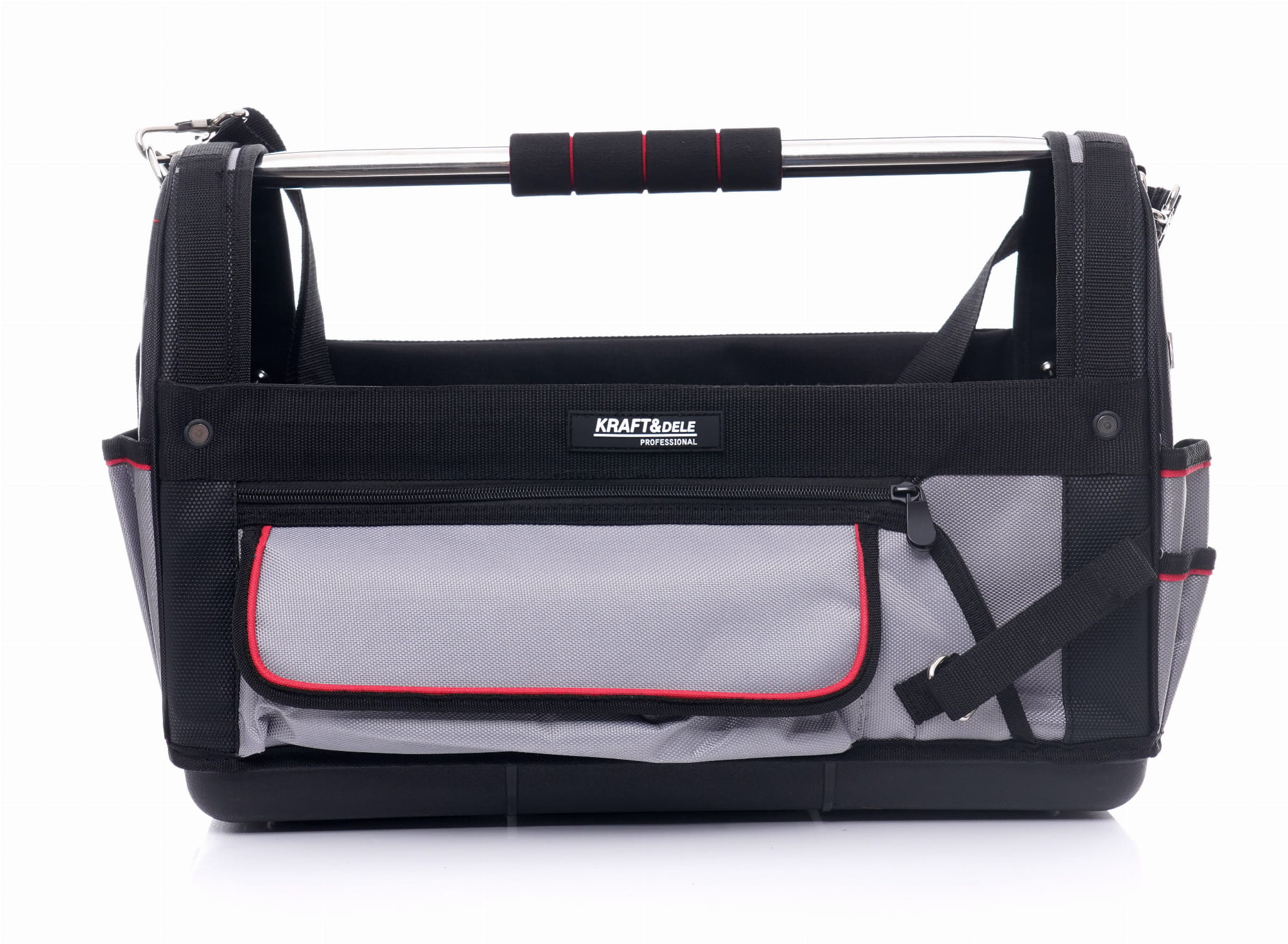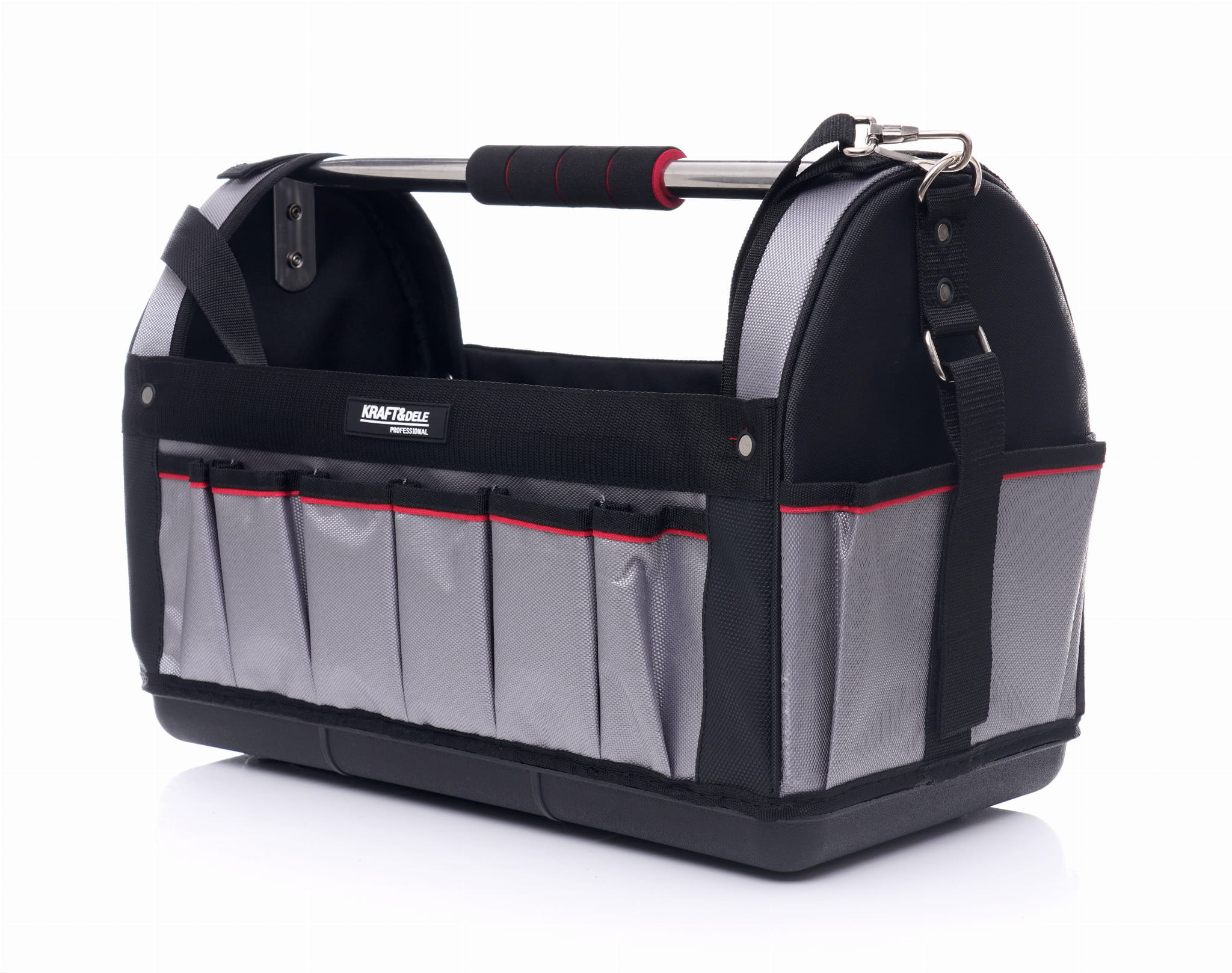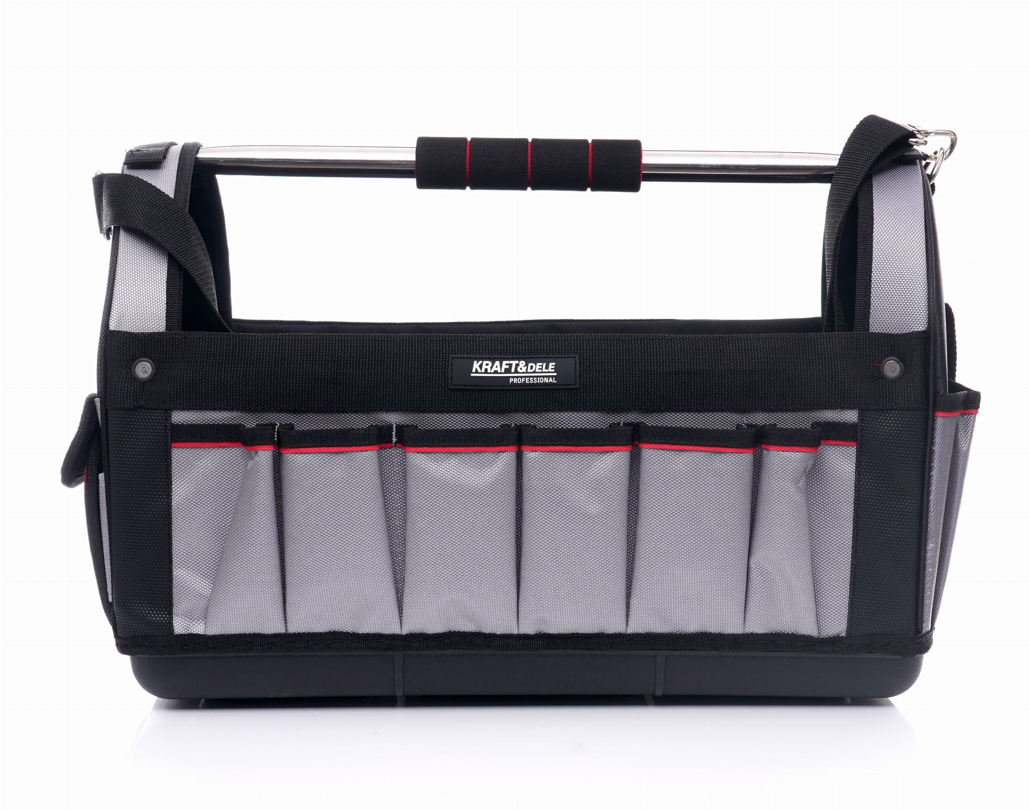 KD2044 to torba narzędziowa o rozmiarze 20 cali, przeznaczona do codziennego użytku przez elektryków, hydraulików, glazurników i innych monterów. Konstrukcja łączy sztywne dno z wytrzymałym materiałem i rozbudowanym systemem kieszeni, umożliwiając transport i organizację zestawu narzędzi roboczych.
