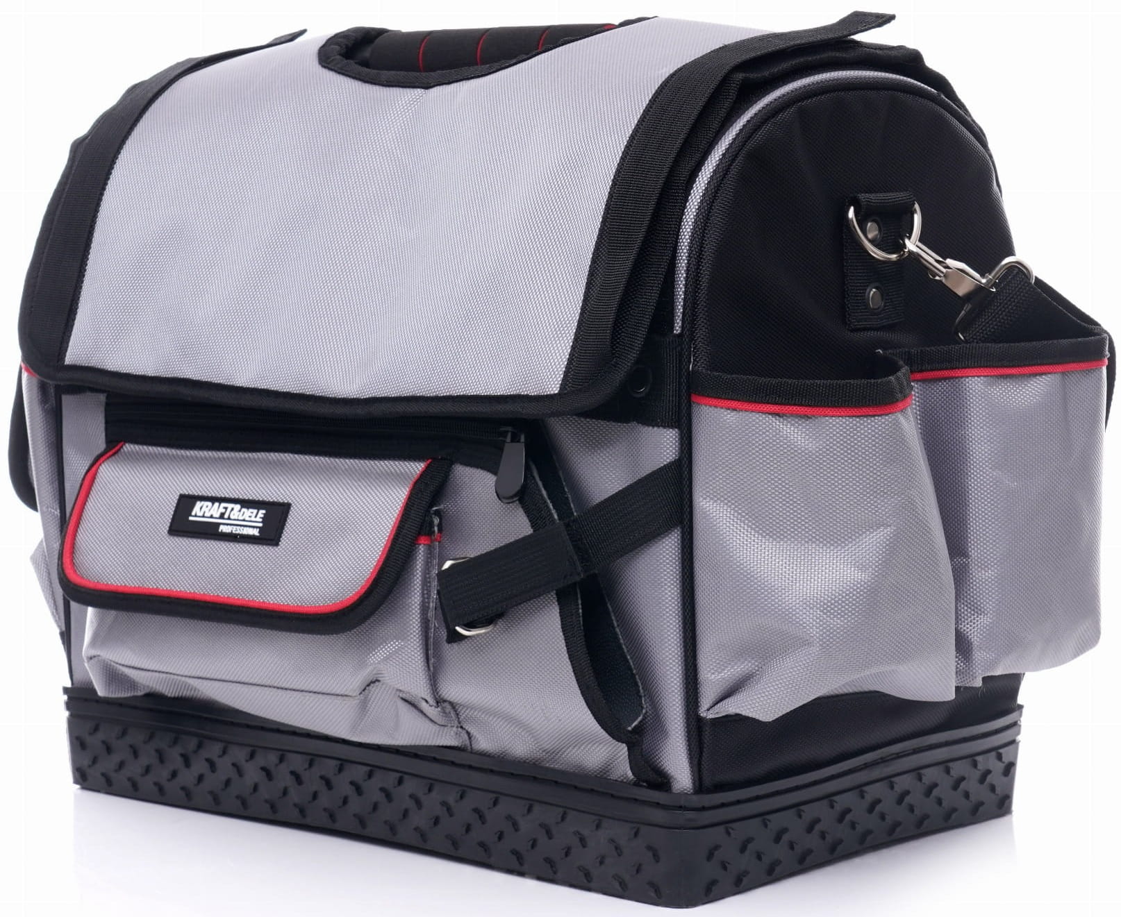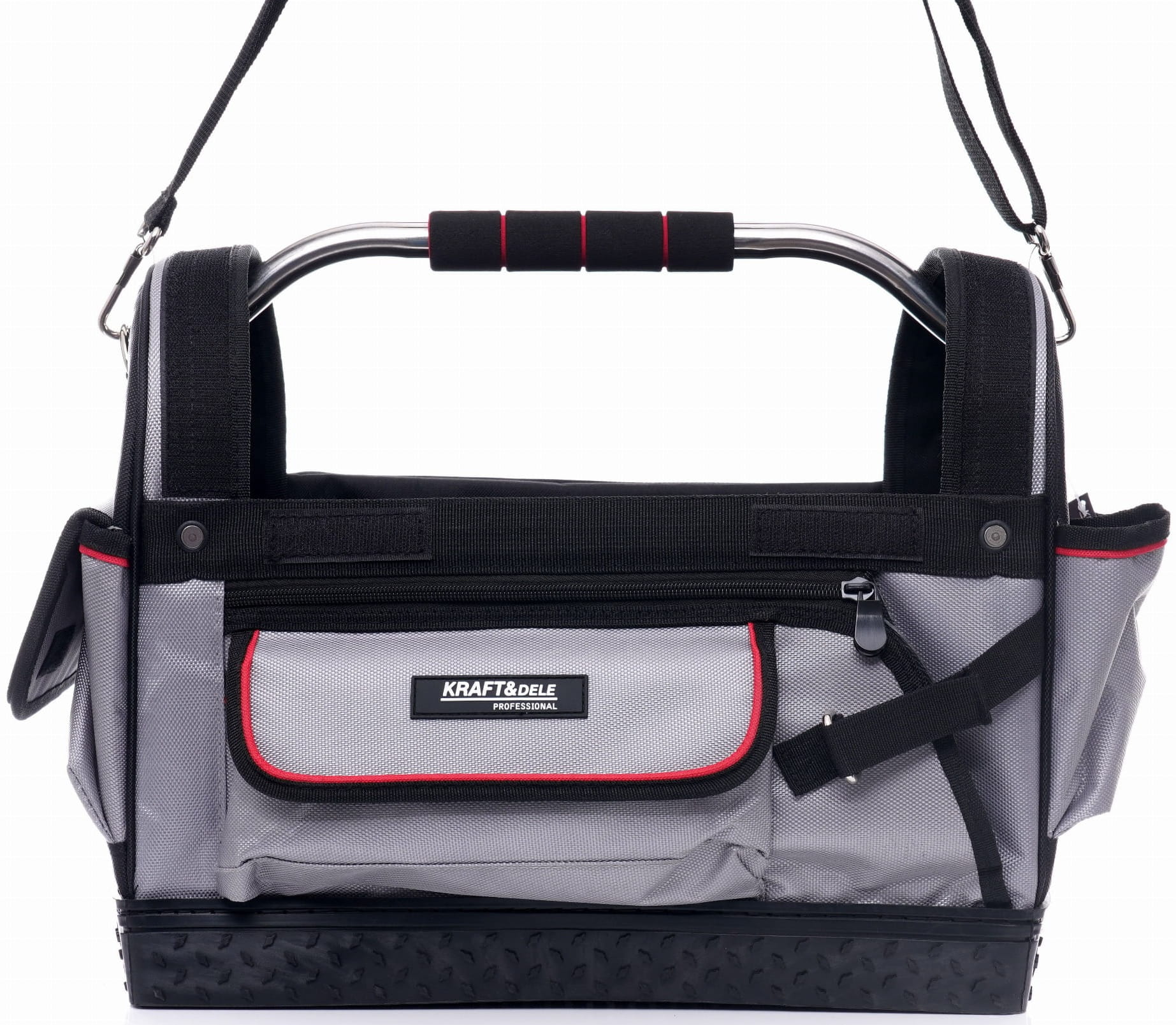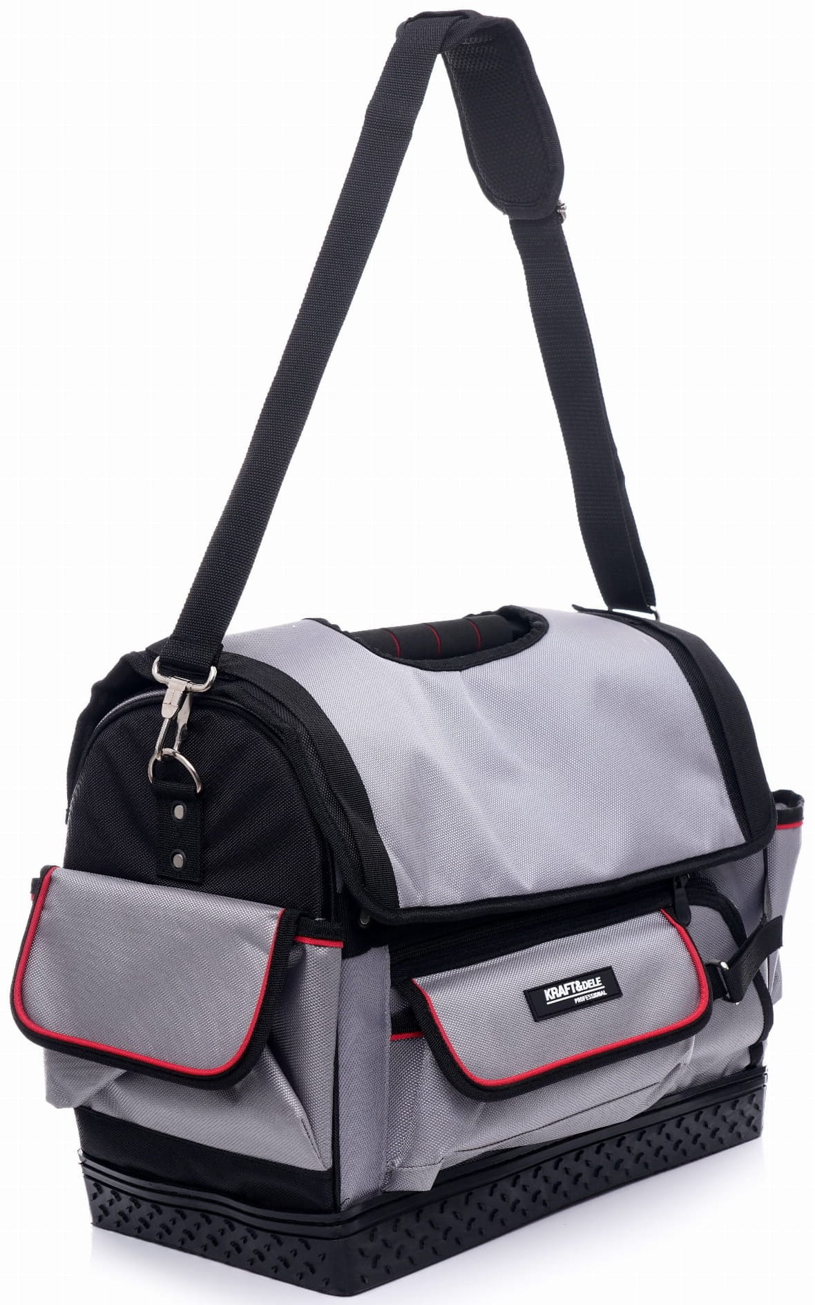 KD2037 to otwarta torba monterska w rozmiarze 18", wykonana z poliestru 600x600 Denier. Otwarta górna część umożliwia natychmiastowy wgląd w zawartość i swobodne sięganie po narzędzia bez konieczności otwierania zapięć. Sztywne, kompozytowe dno stabilizuje torbę podczas pracy i chroni jej strukturę przy obciążeniu.