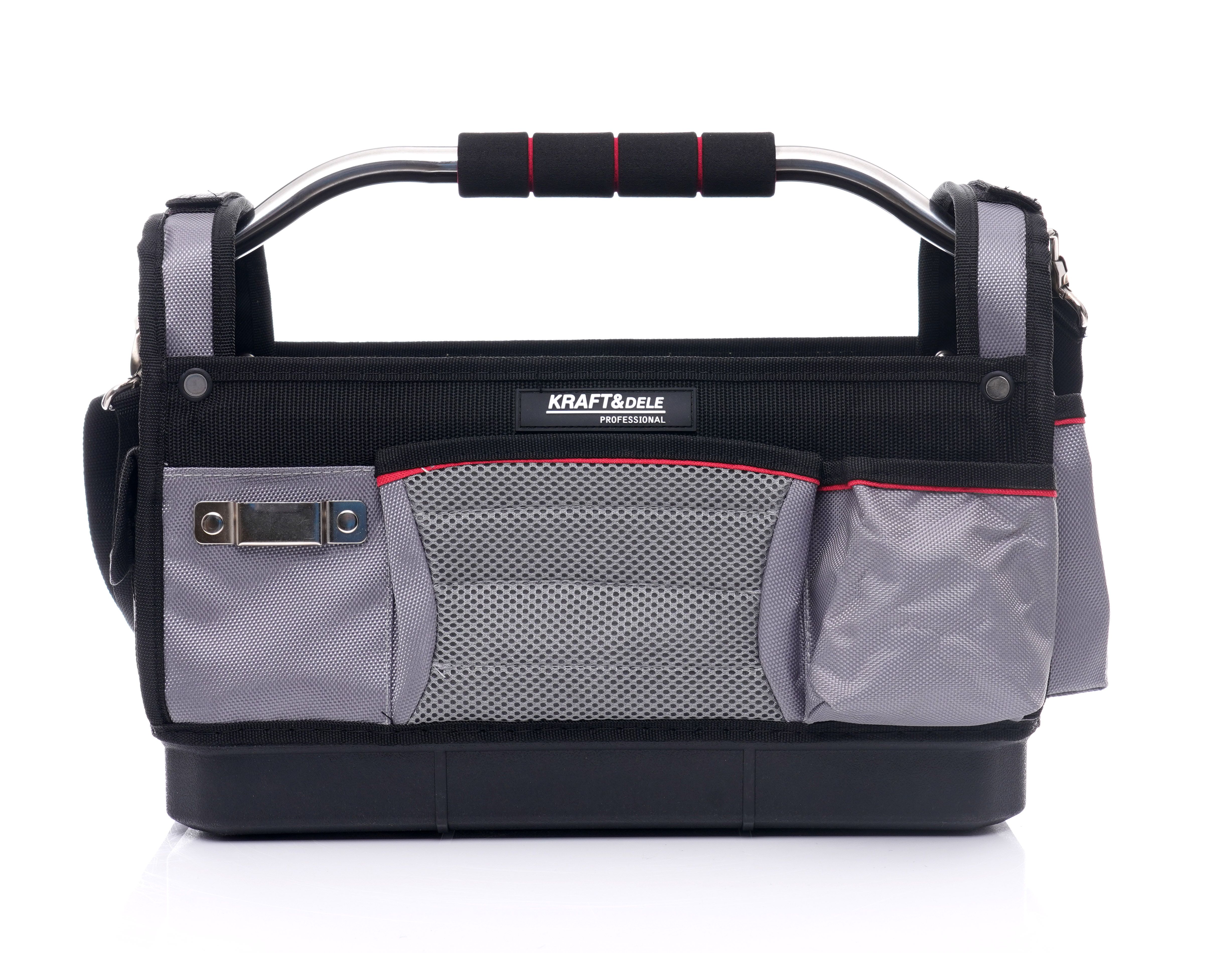 TORBA NARZĘDZIOWA Z TWARDĄ PODSTAWĄ 16" KD2046 została opisana jako organizer dla monterów, którzy potrzebują mobilnego, uporządkowanego zestawu narzędzi. Model KD2046 sprawdzi się wszędzie tam, gdzie liczy się szybki dostęp do wyposażenia i bezpieczne przenoszenie.