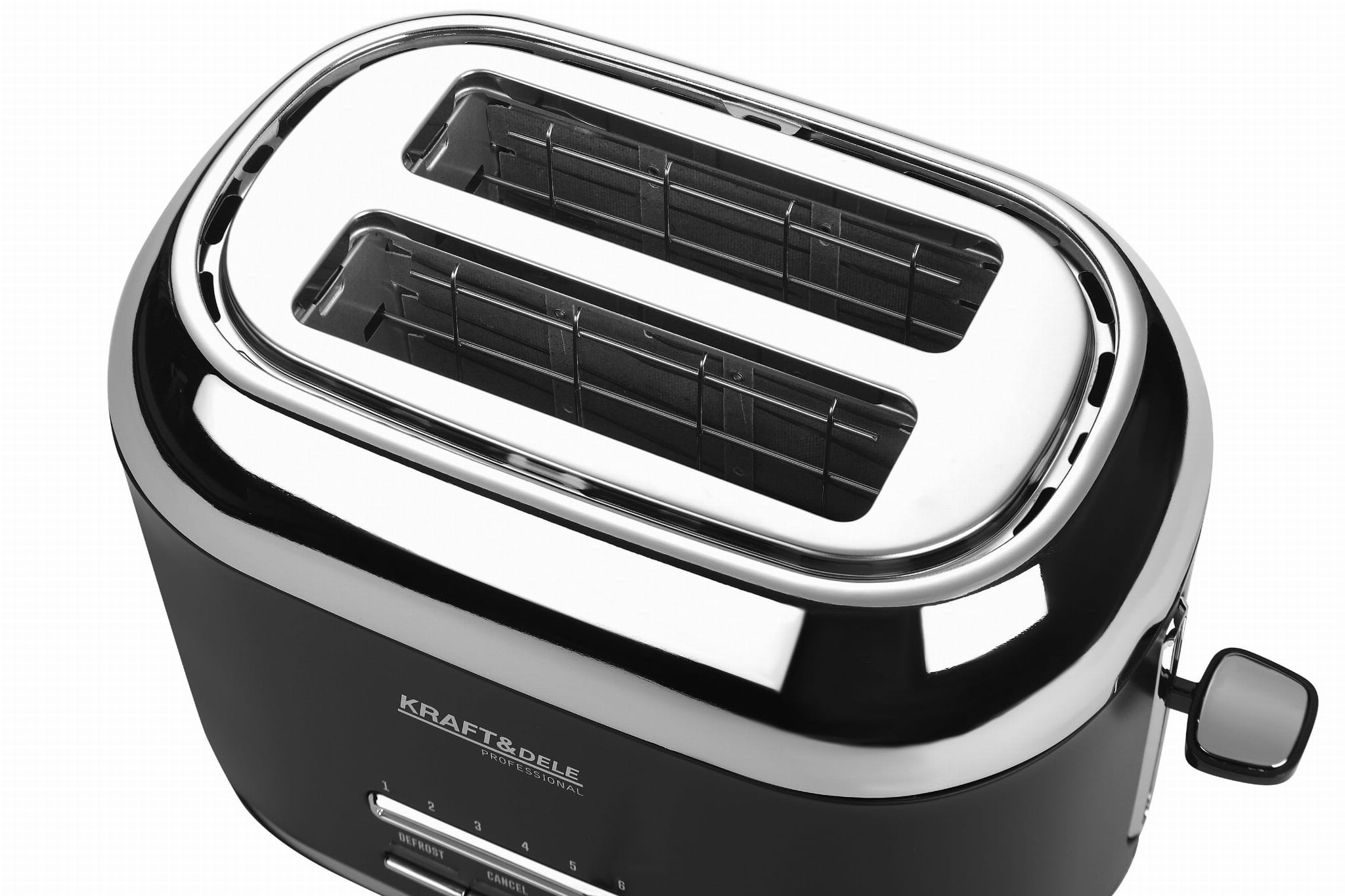 KD4154 to toster elektryczny na dwie kromki chleba, wyposażony w trzy tryby pracy — opiekanie, rozmrażanie i podgrzewanie — oraz sześciostopniową regulację przyrumienienia. Moc 1000W zapewnia szybkie osiągnięcie temperatury roboczej i równomierne opiekanie pieczywa.
