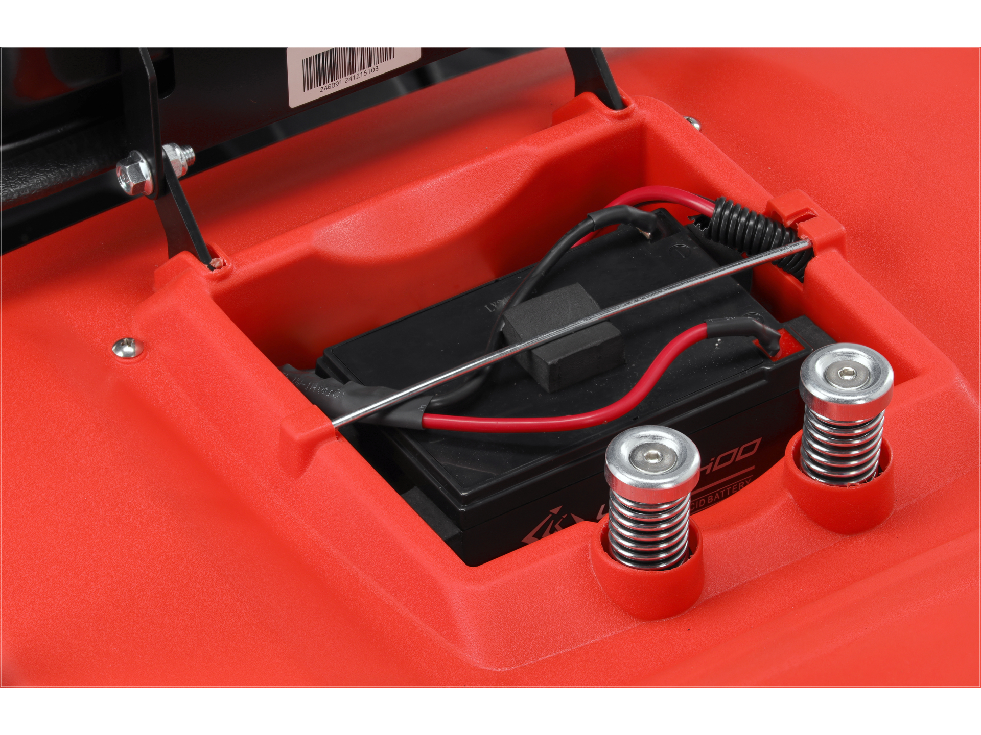 Jednostka napędowa LC1P91F-1 to jednocylindrowy, czterosuwowy silnik górnozaworowy o mocy 11 kW przy 2650 obr./min. Konstrukcja z chłodzeniem powietrznym zapewnia stabilną pracę przy koszeniu gęstej trawy. Elektryczny rozrusznik eliminuje konieczność ręcznego uruchamiania, co skraca czas przygotowania maszyny do pracy. Akumulator 12V 12Ah z dołączoną ładowarką gwarantuje gotowość do pracy.