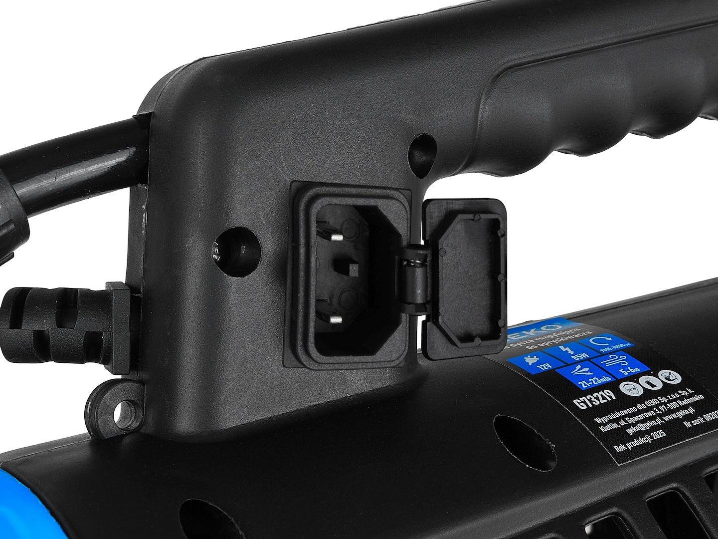 Elektryczna turbo dysza rozpylająca zasilana napięciem 12V, przeznaczona do współpracy z opryskiwaczami akumulatorowymi i przewodowymi. Silnik o mocy 85W wytwarza strumień cieczy o prędkości 21–23 m/s, umożliwiając pokrycie powierzchni w zasięgu do 6 metrów od operatora.