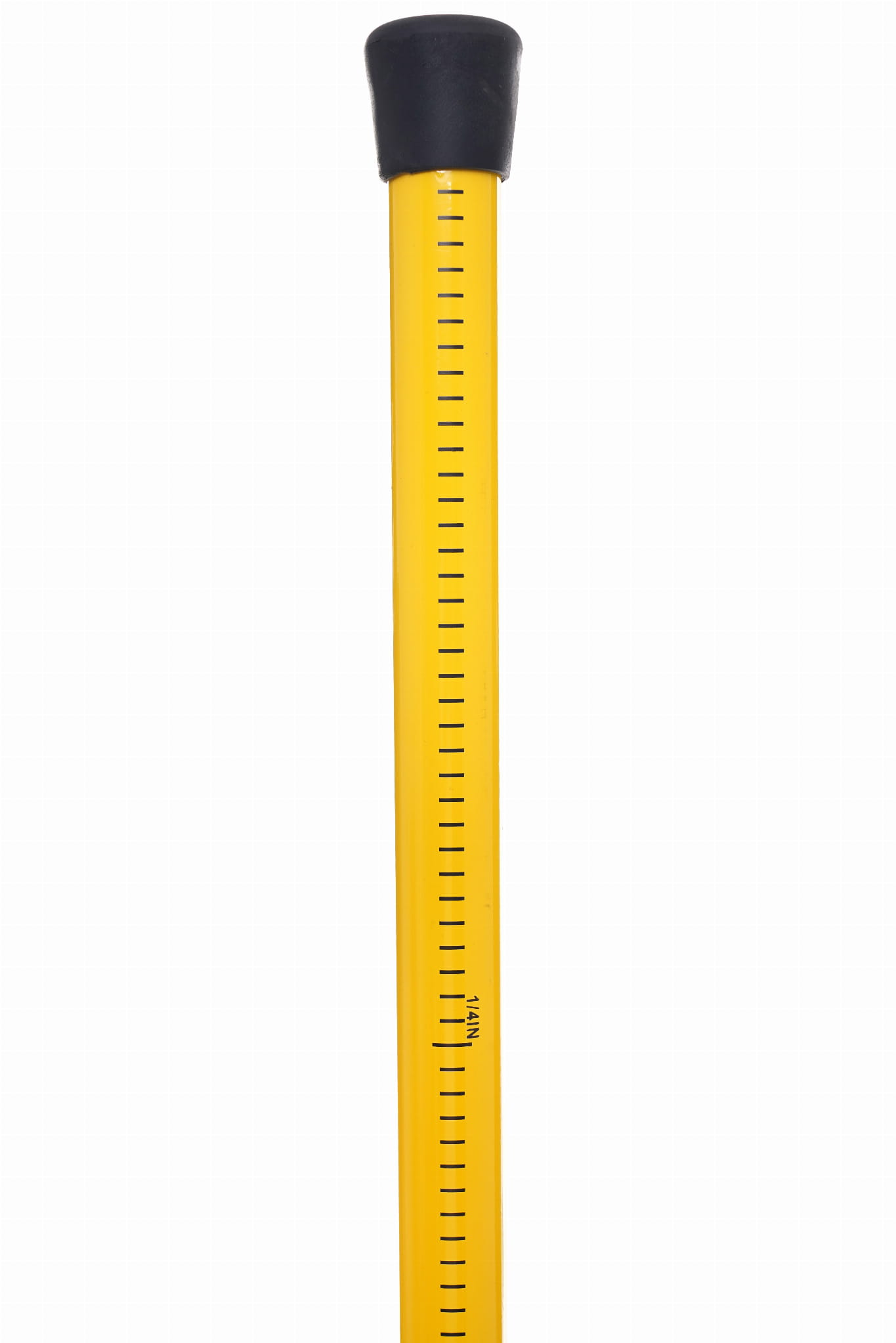 Naniesiona na tyczkę skala metryczna z podziałką co 1 cm pozwala odczytać aktualną wysokość ustawienia półki bez użycia dodatkowych narzędzi pomiarowych. Ułatwia powtarzalne ustawianie lasera na tej samej wysokości w kolejnych punktach pomiarowych.