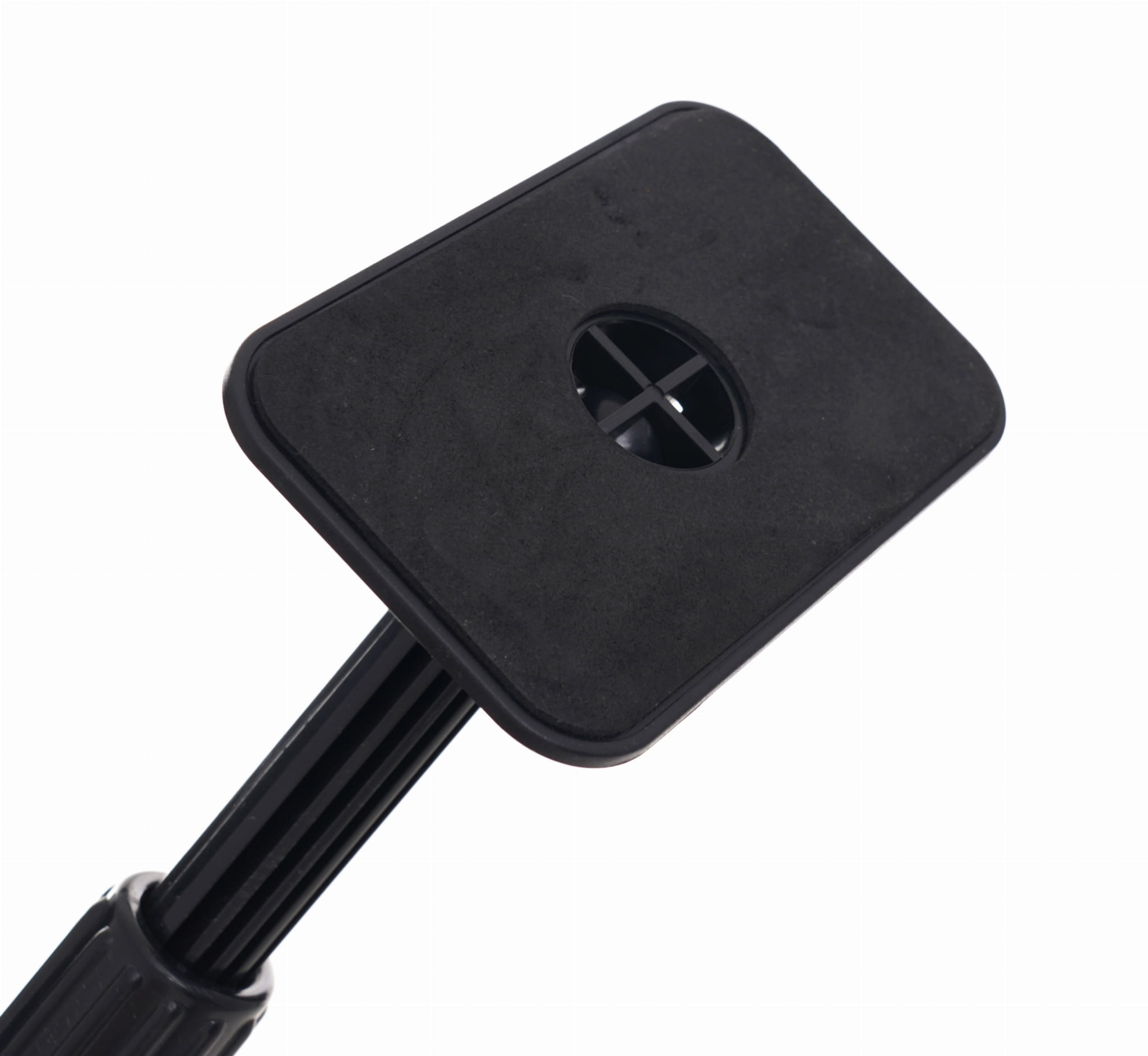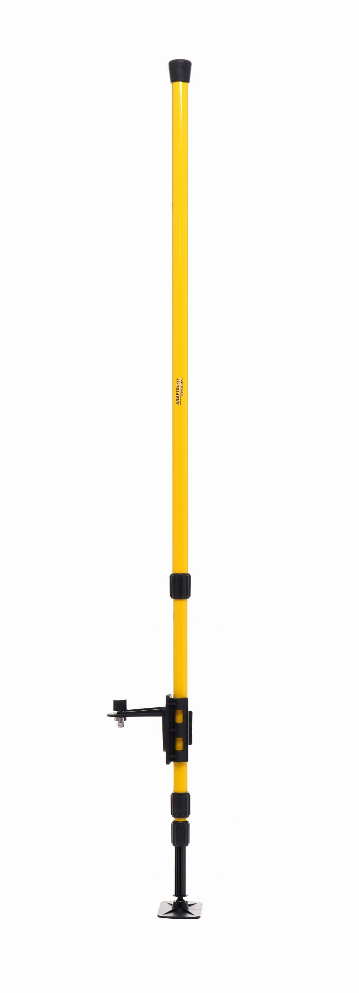 Regulowana podstawa umożliwia stabilne oparcie tyczki na nierównym podłożu. Element blokujący montowany na górnej części tyczki dociska ją do sufitu, zapewniając pewne i sztywne zamocowanie podczas pracy.