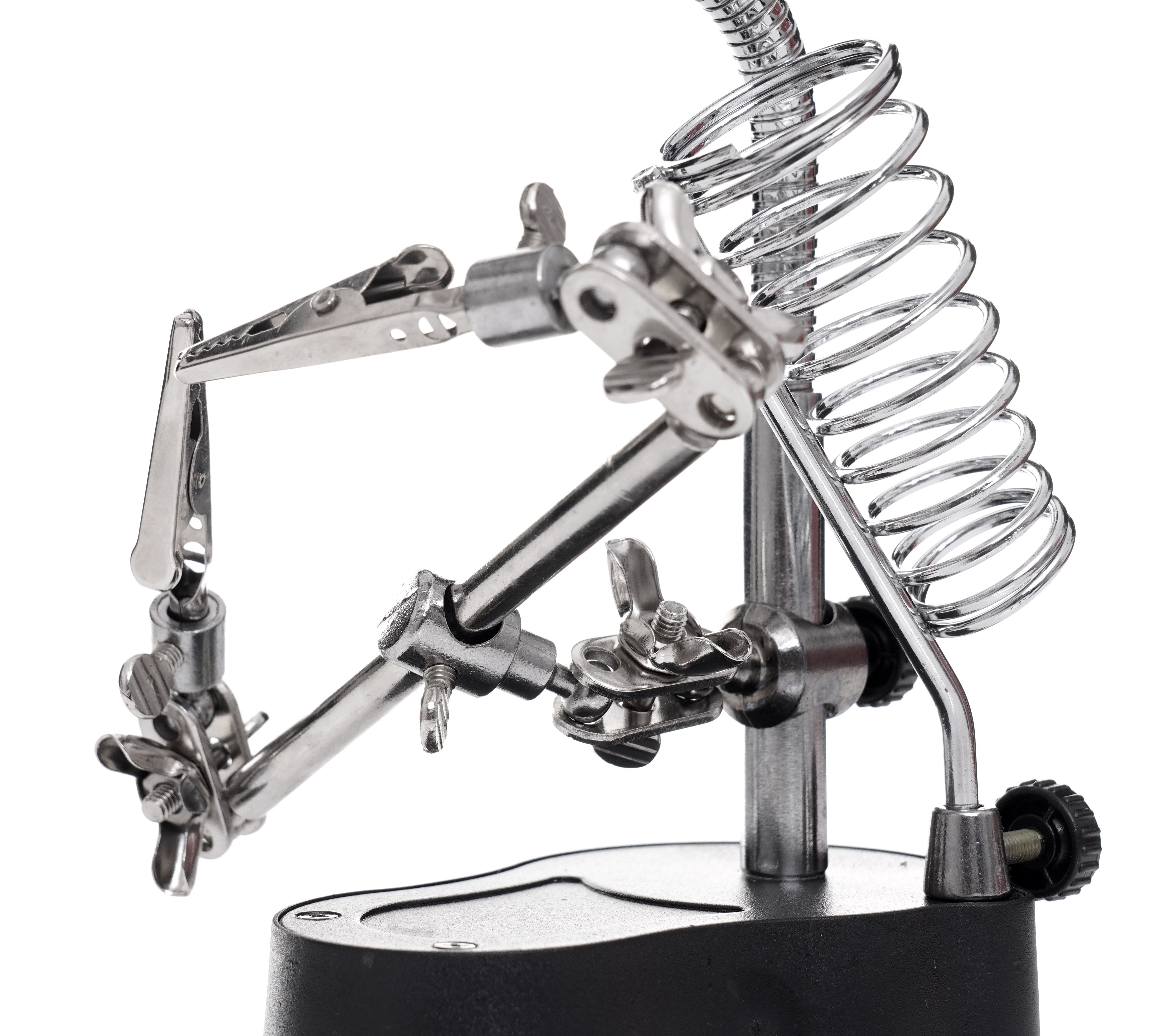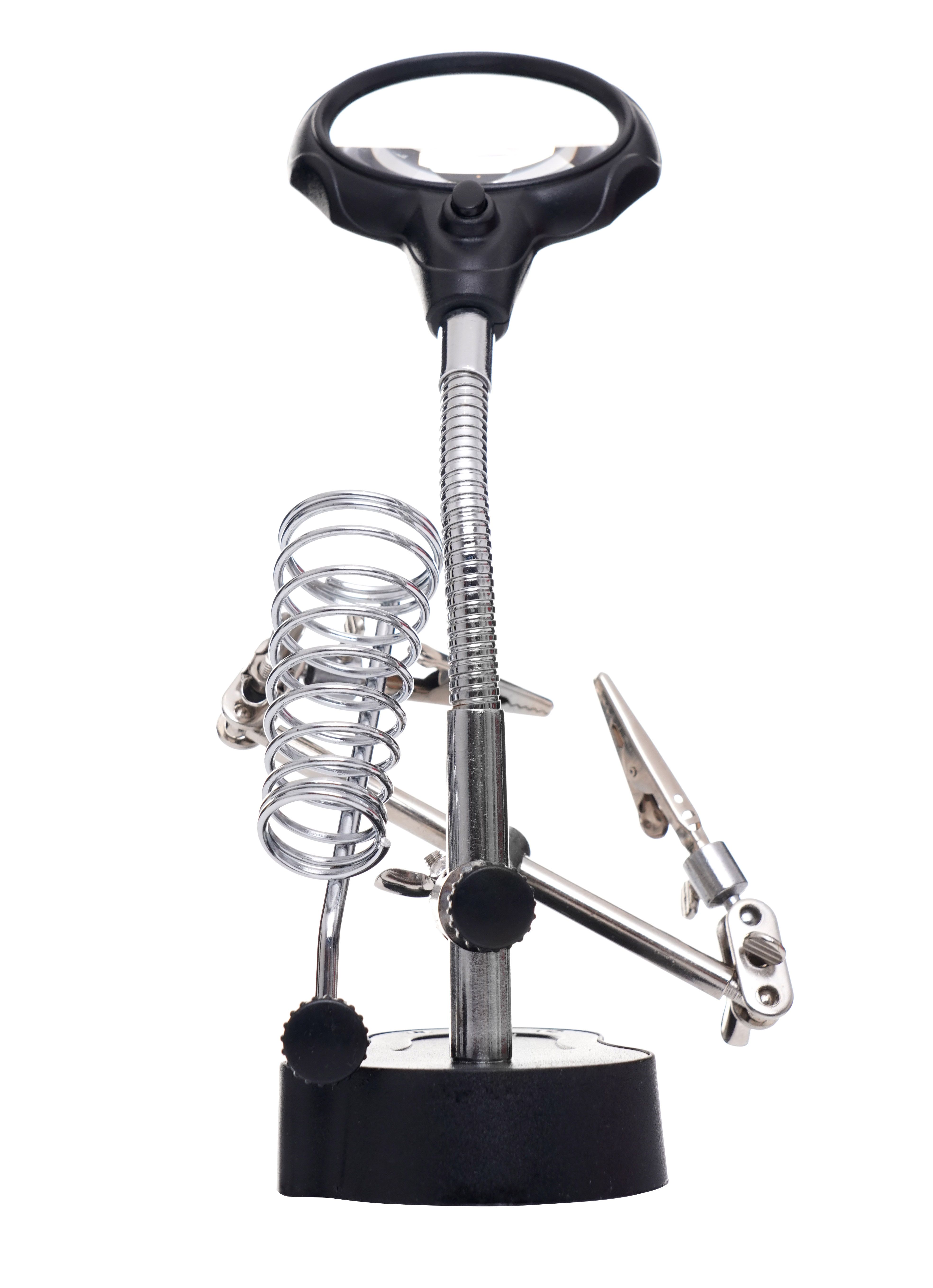 Uchwyt / lupa do lutowania LED „trzecia ręka” KRAFT&DELE KD10455 to praktyczny przyrząd do zadań, w których liczy się stabilne mocowanie i dobra widoczność detalu. Ułatwia lutowanie i rozlutowywanie przewodów oraz drobnych elementów, a także prace wymagające dokładności, np. przy naprawie biżuterii.