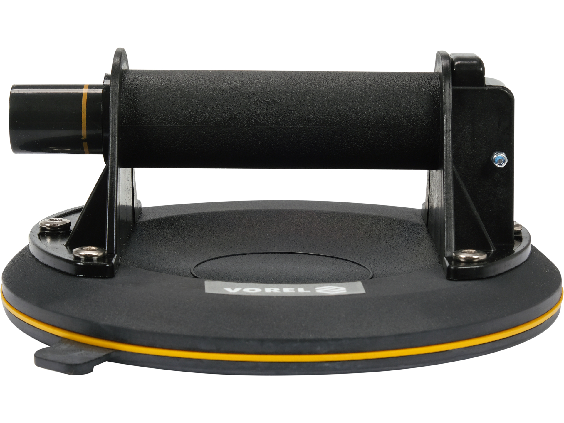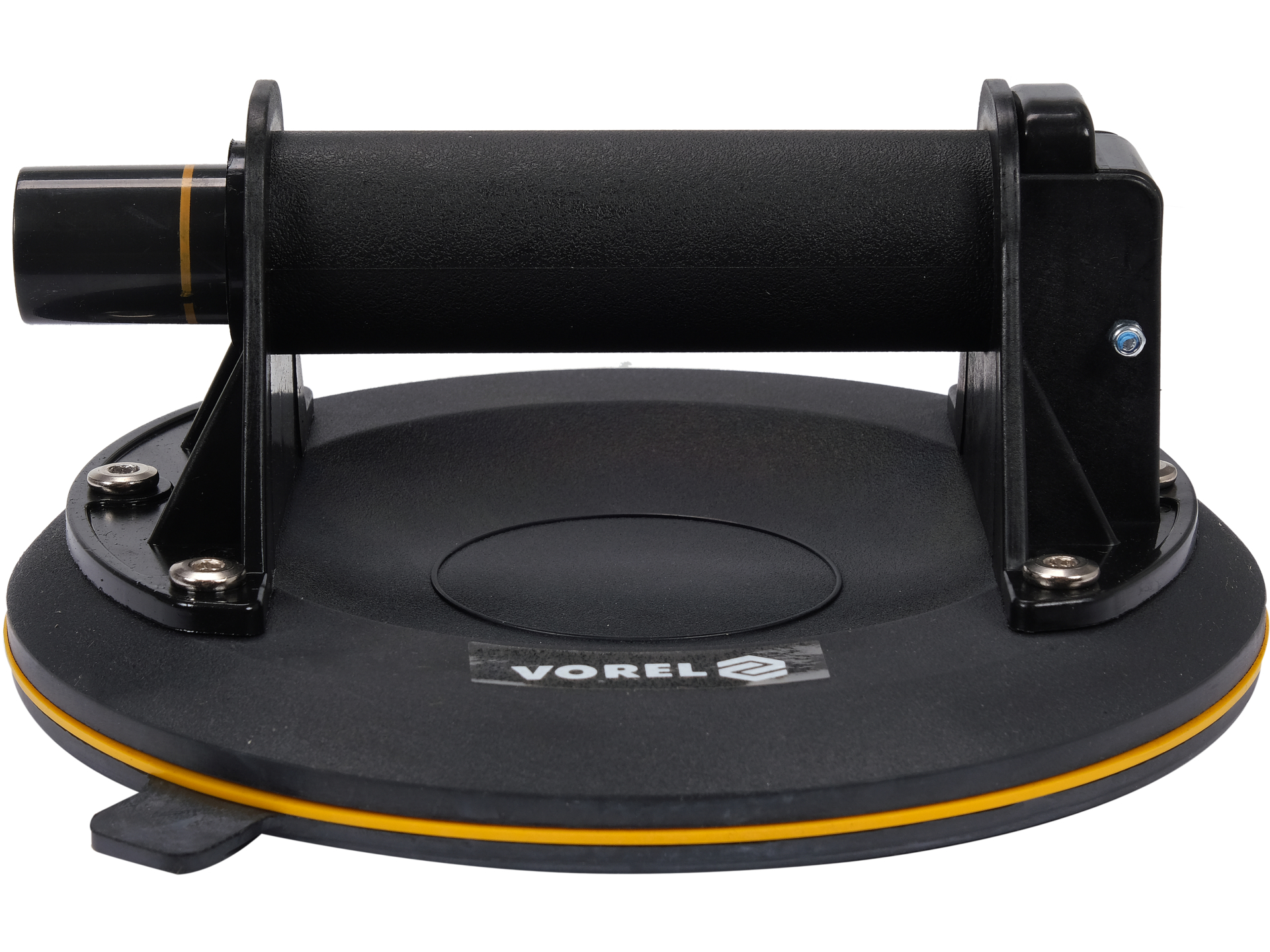 Jednoprzyssawkowy uchwyt przeznaczony do bezpiecznego przenoszenia płaskich elementów o gładkiej powierzchni. Korpus z tworzywa ABS i gumowa przyssawka o średnicy 204 mm zapewniają stabilny chwyt przy maksymalnym udźwigu do 100 kg.