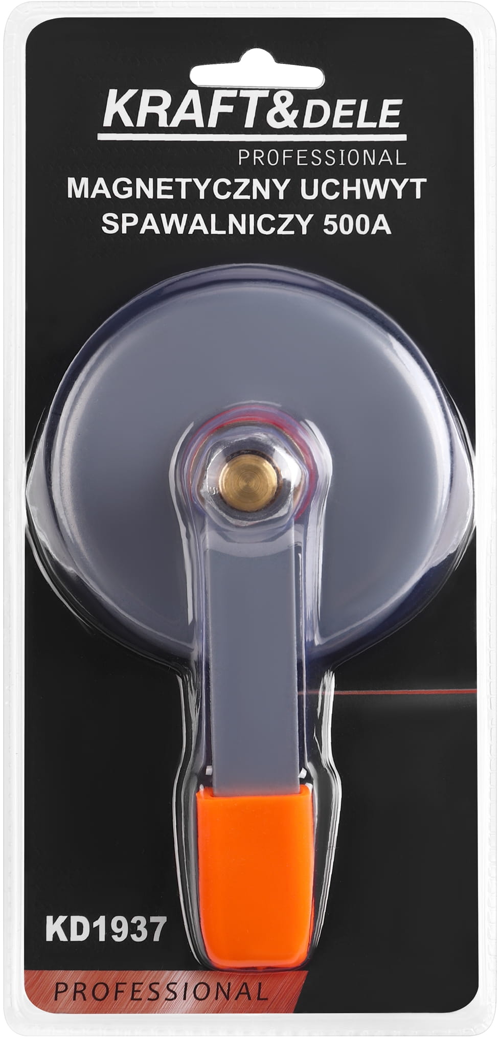 KD1937 to uchwyt uziemiający z magnesem neodymowym, zastępujący tradycyjne zaciski krokodylkowe przy podłączaniu przewodu masowego do spawanego elementu. Mocuje się bezpośrednio do powierzchni stalowej bez konieczności zakleszczania ani przykręcania, co skraca czas przygotowania stanowiska spawalniczego.