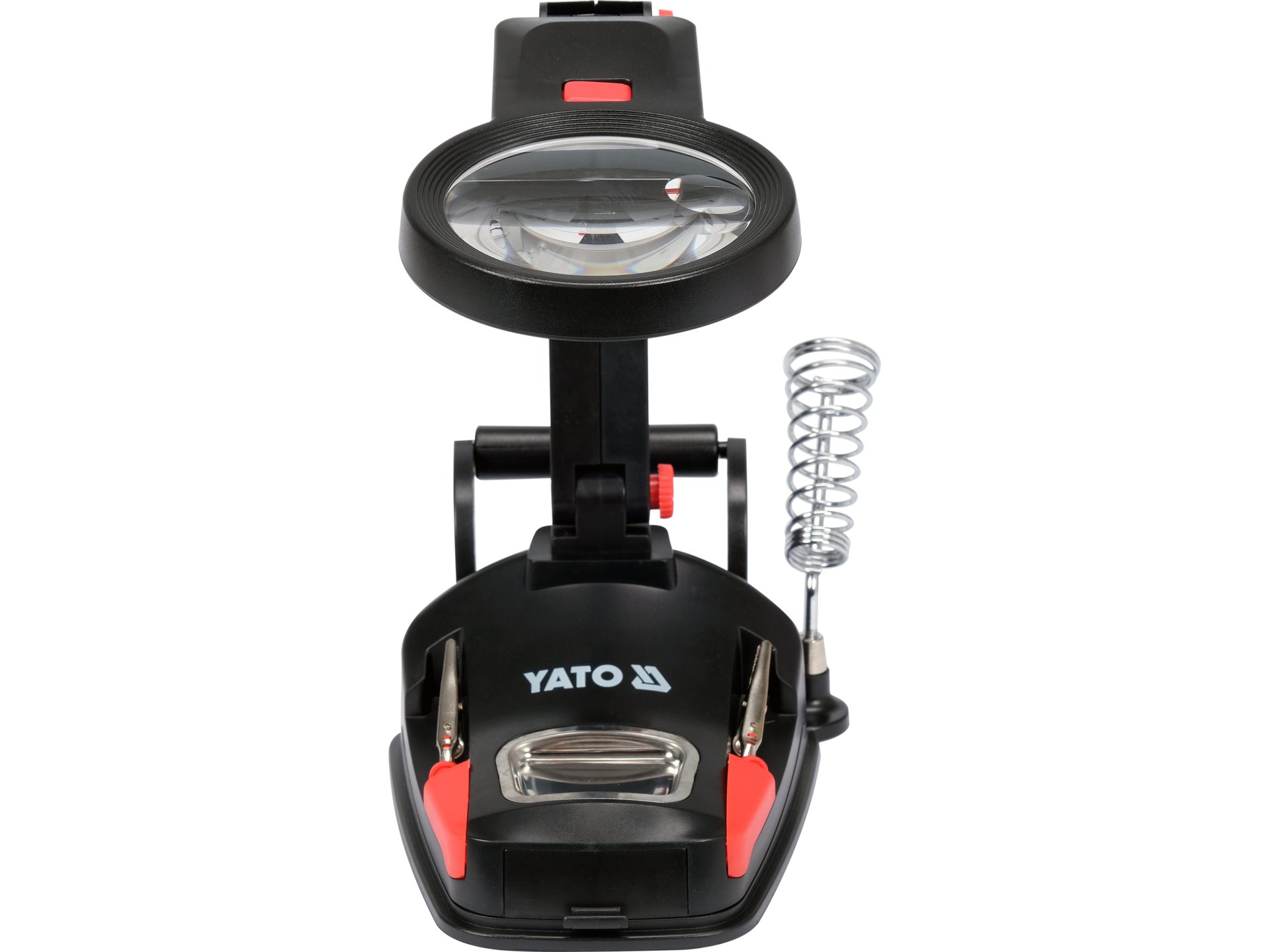 Dwa niezależne ramiona zakończone zaciskami typu krokodylek zamontowane na podwójnych przegubach kulowych umożliwiają mocowanie elementów o różnych kształtach i rozmiarach. System przegubów pozwala na ustawienie zacisków pod dowolnym kątem względem siebie.