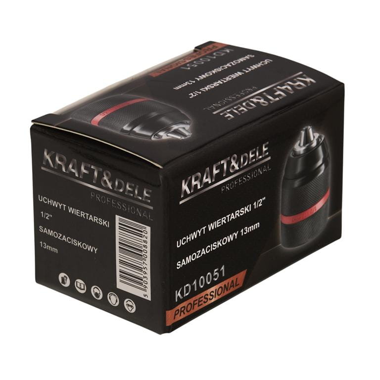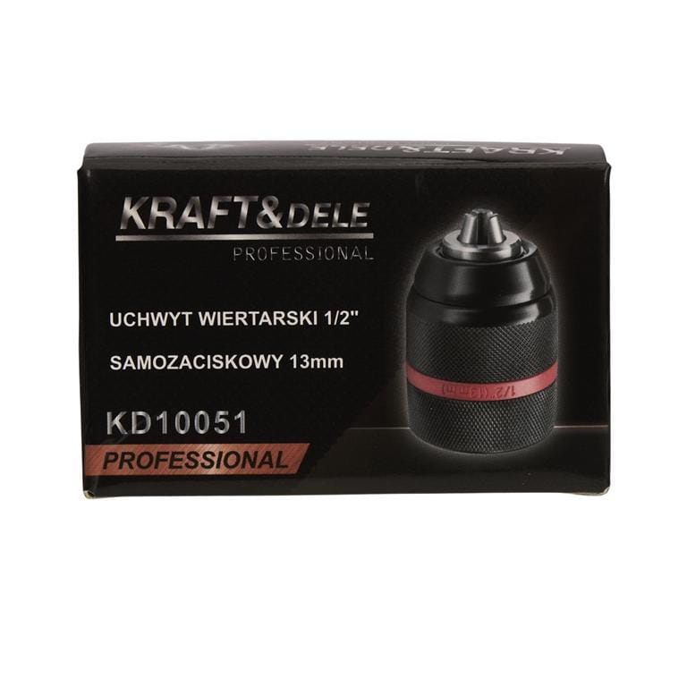 Uchwyt wiertarski KD10051 to element wymienny przeznaczony do wiertarek ręcznych i wkrętarek wyposażonych w wrzeciono z gwintem zewnętrznym 1/2". Mechanizm samozaciskowy umożliwia mocowanie wierteł i końcówek bez użycia klucza, w zakresie średnic od 1,5 do 13 mm.