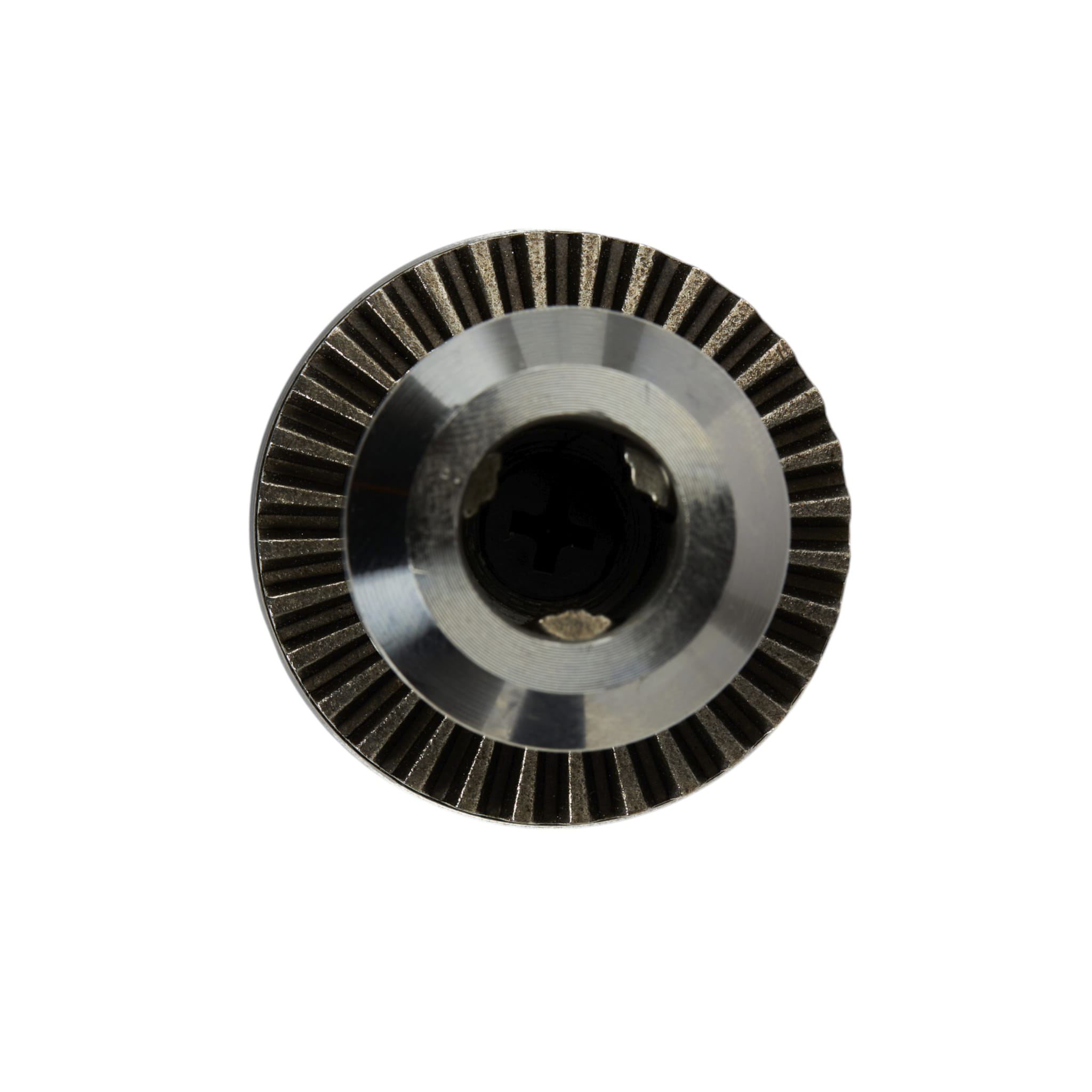 Uchwyt wyposażony jest w mechanizm zębaty obsługiwany kluczykiem. Zaciskanie przy użyciu klucza zapewnia pewniejsze i bardziej równomierne dociśnięcie szczęk niż uchwyty szybkozaciskowe, co ma znaczenie przy wierceniu z większym momentem obrotowym lub w twardych materiałach.