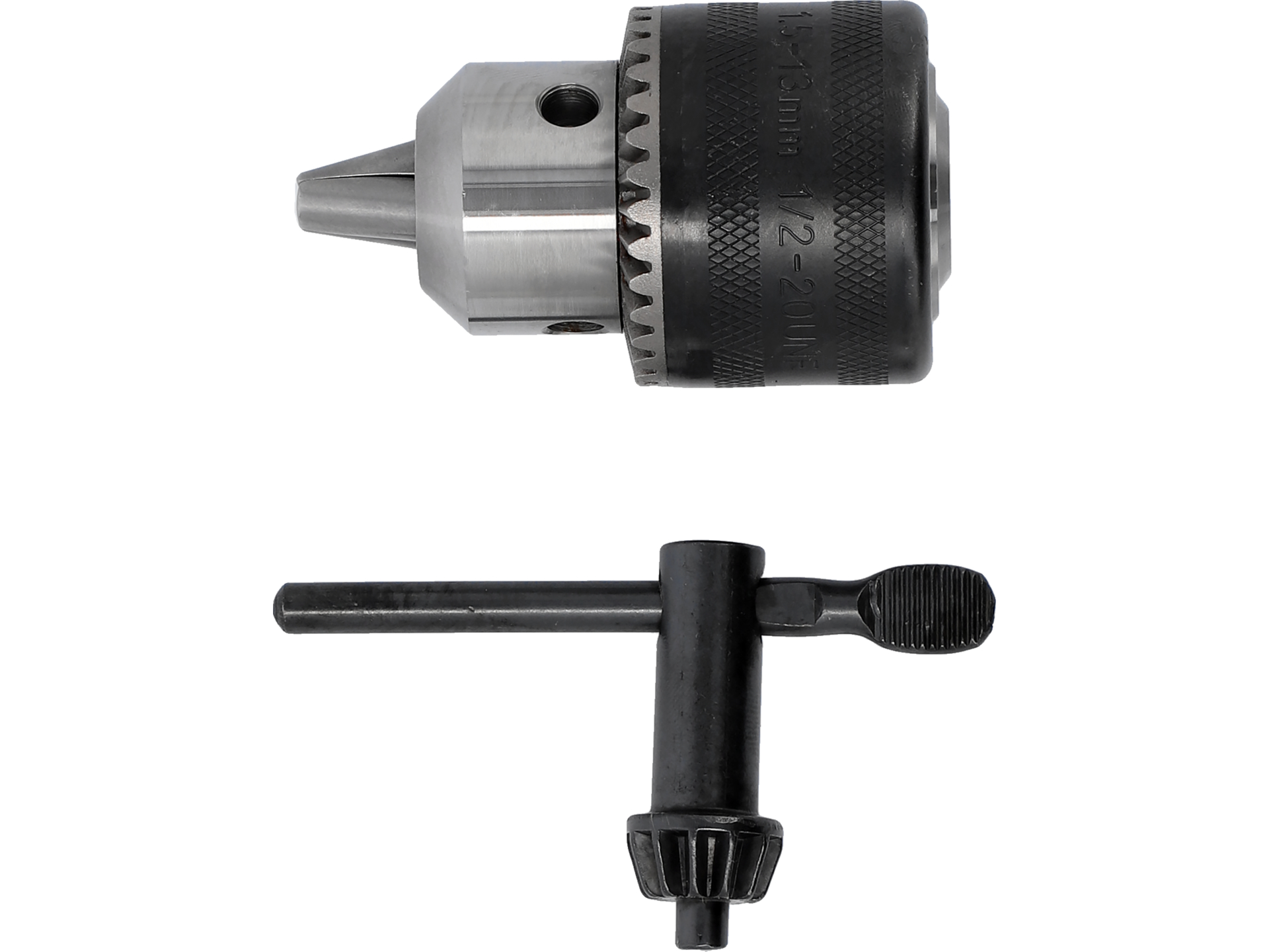 Uchwyt wiertarski z mocowaniem kluczowym do wiertarek elektrycznych i udarowych. Przeznaczony do wierteł cylindrycznych o średnicy trzpienia od 1,5 do 13 mm, montowany na gwincie 1/2" 20UNF.