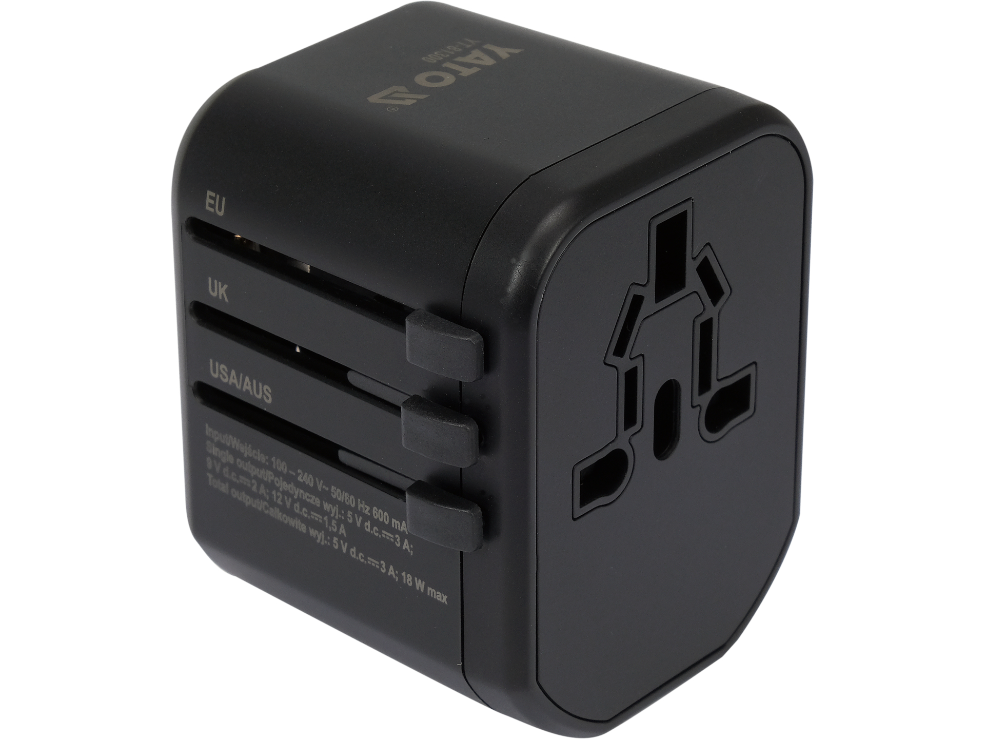 Adapter podróżny z wbudowaną ładowarką USB umożliwiający podłączenie urządzeń elektrycznych oraz ładowanie smartfonów i tabletów w ponad 150 krajach. Obsługuje europejskie, amerykańskie, brytyjskie i australijskie standardy gniazdek.