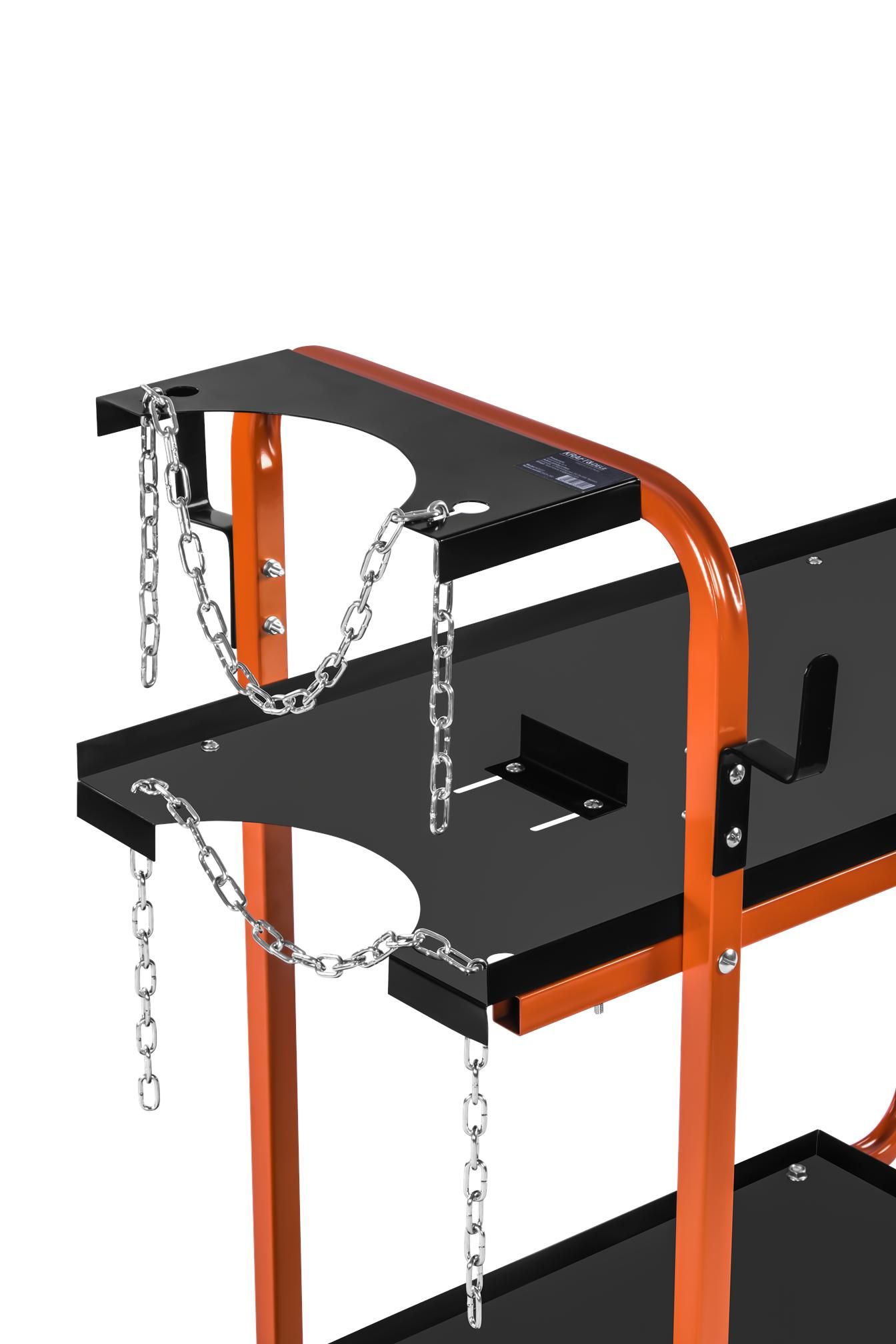 Półka na butlę oraz łańcuchy mocujące pomagają utrzymać butlę w stabilnej pozycji podczas przemieszczania.