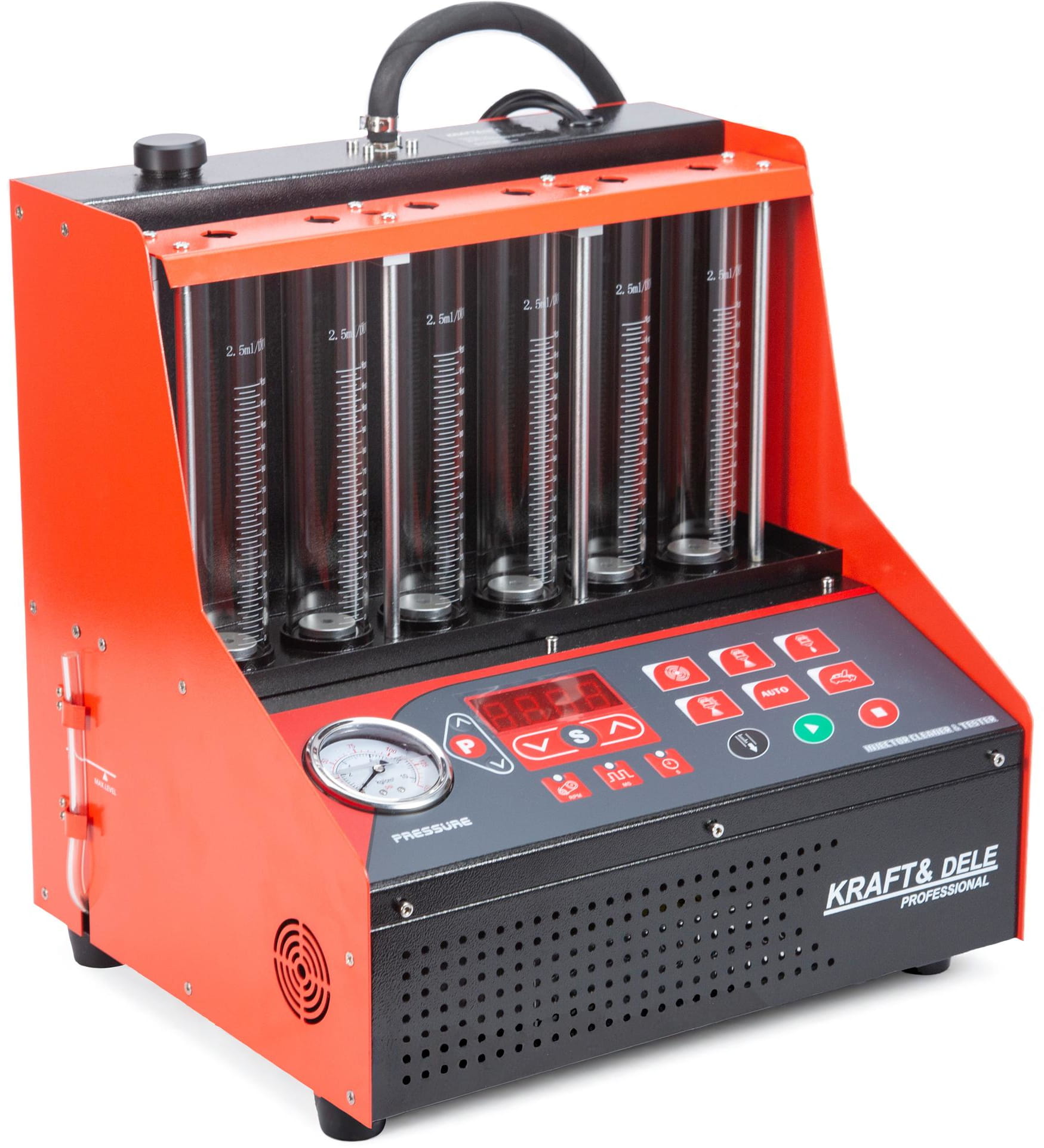 Wbudowany mikroprocesor umożliwia symulację pracy silnika w zakresie 100–9900 rpm (krok 100 rpm) oraz regulację szerokości impulsu sterującego od 0,5 do 25 ms (krok 0,1 ms). Pozwala to przeprowadzić testy jednolitości rozpylania, szczelności (wyciek przy zamkniętej dyszy), przepływu wtryskowego oraz porównanie objętości wtrysku między kilkoma wtryskiwaczami jednocześnie.