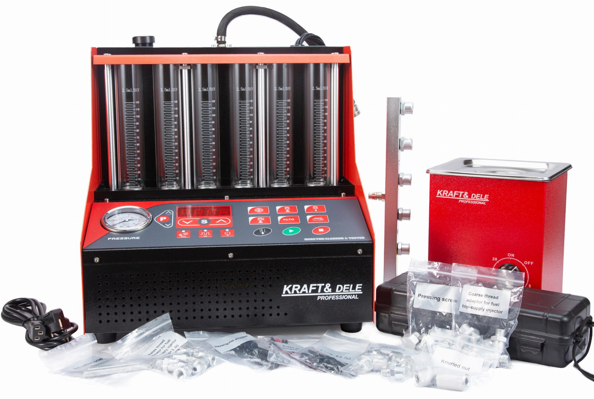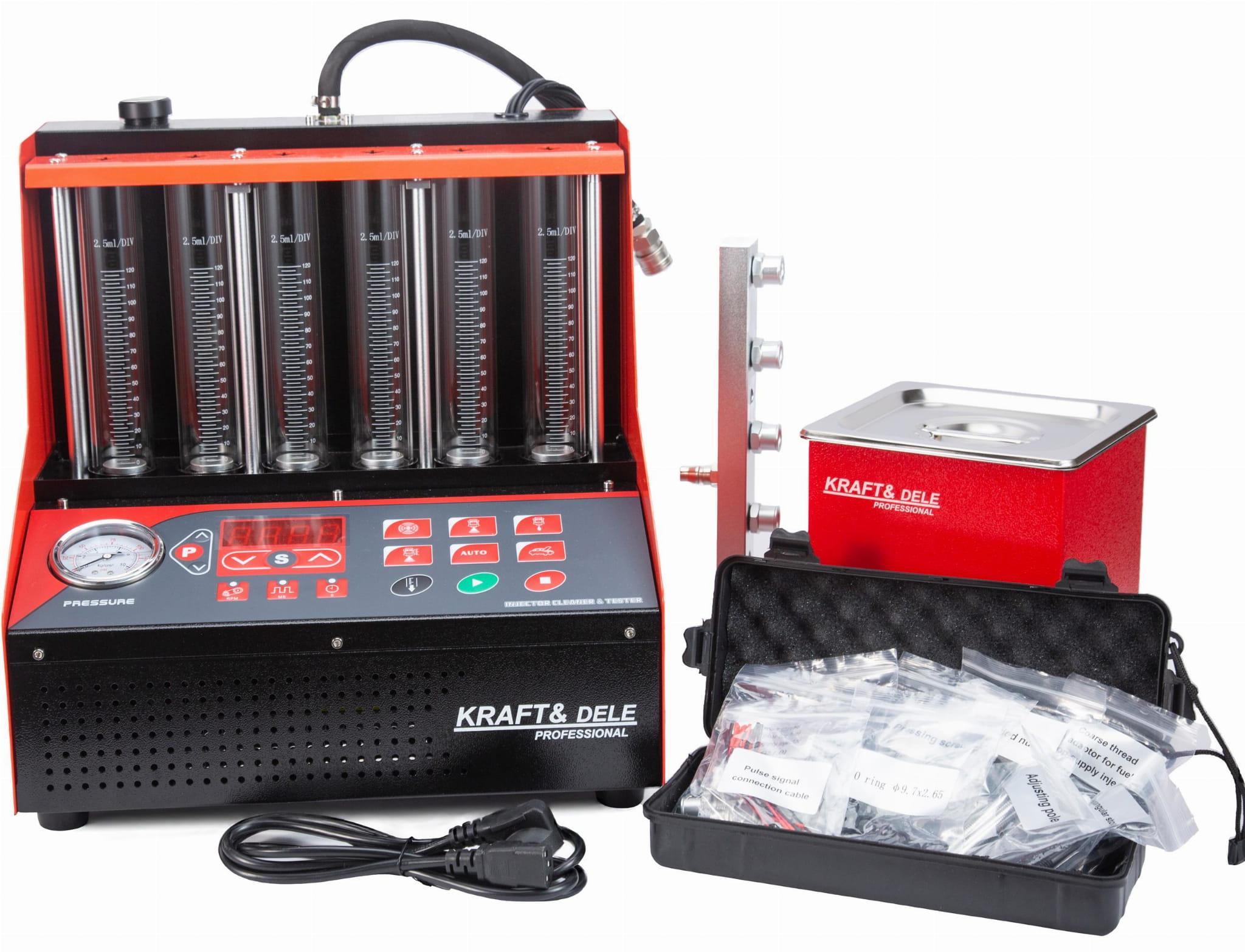 Tester wtryskiwaczy KD3541, myjka ultradźwiękowa, akcesoria montażowe, instrukcja obsługi w języku polskim. Gwarancja producenta: 12 miesięcy.