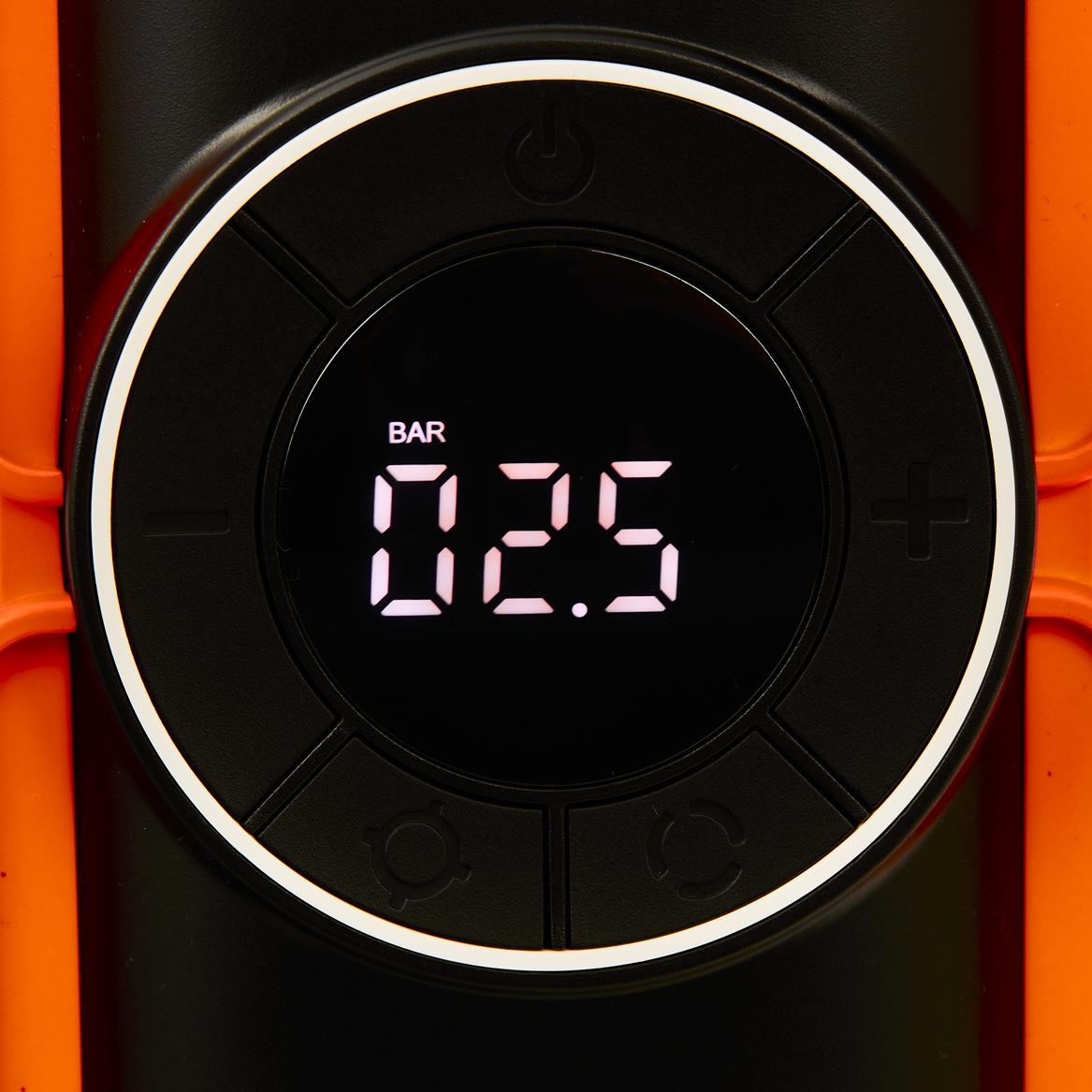 Wydajność 25 l/min pozwala na pompowanie opon samochodowych, rowerowych i piłek. Kluczową funkcją jest automatyczne zatrzymanie po osiągnięciu ustawionego ciśnienia — eliminuje ryzyko przepompowania. Przed użyciem należy ustawić docelową wartość ciśnienia. Maksymalny ciągły czas pracy sprężarki wynosi 10 minut — po przekroczeniu tego czasu urządzenie wymaga przerwy chłodzącej.