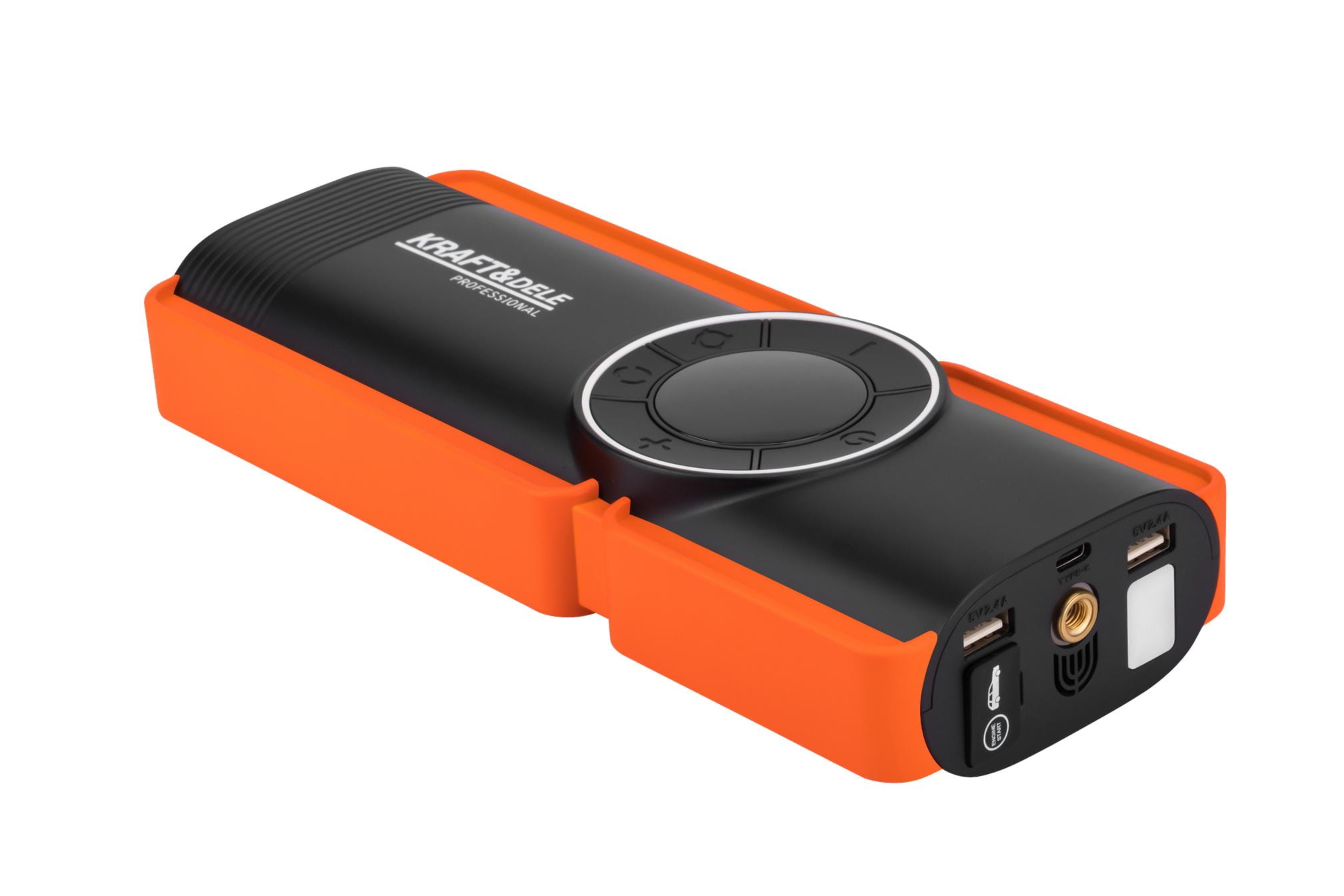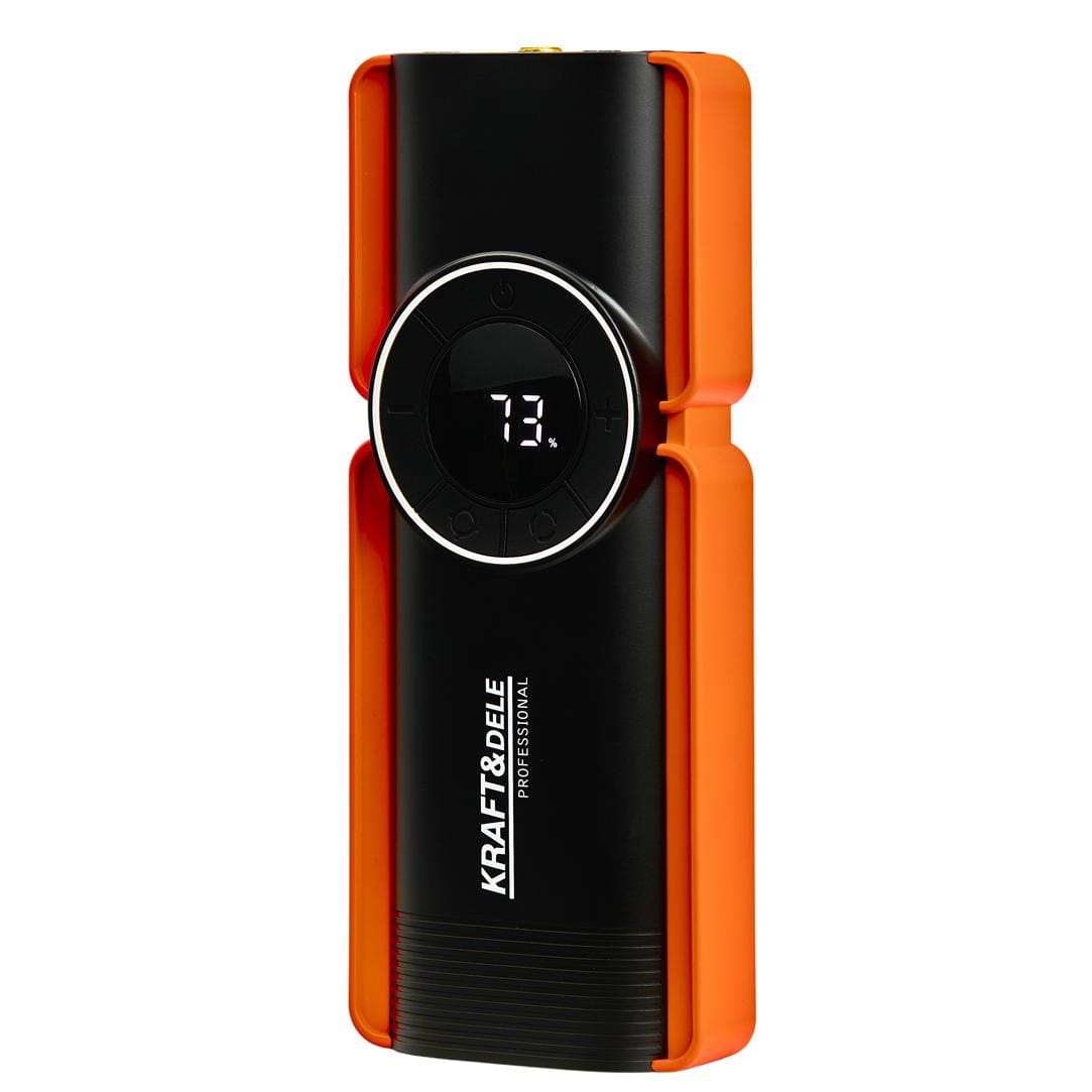 KD5492 to urządzenie wielofunkcyjne łączące cztery niezależne funkcje: awaryjny rozrusznik samochodowy o prądzie szczytowym 1200A, powerbank 10000mAh, sprężarkę powietrza z automatycznym wyłącznikiem oraz latarkę LED. Jedno kompaktowe urządzenie pokrywa najczęstsze potrzeby awaryjne podczas podróży i pracy w terenie.