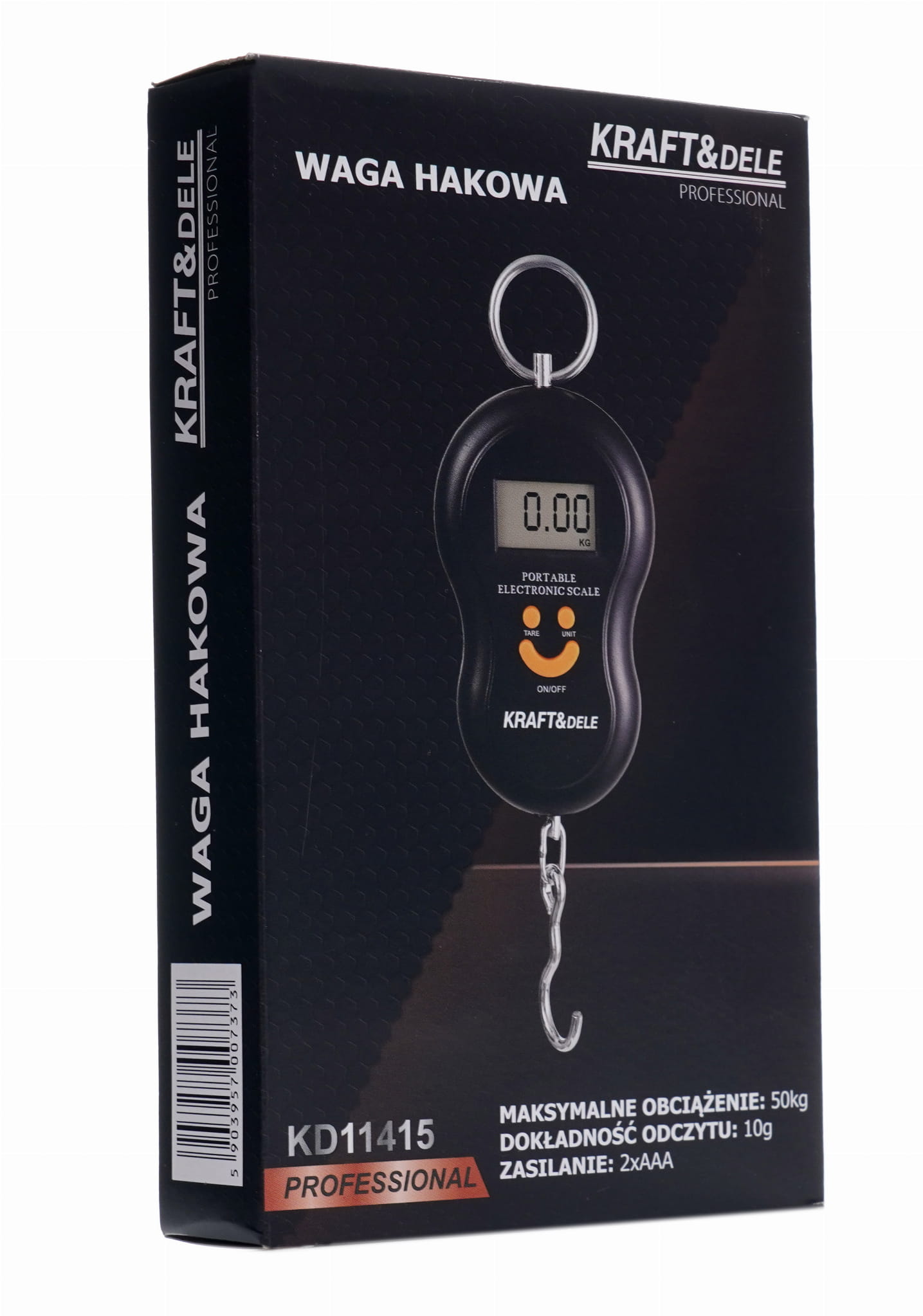 Waga hakowa KD11415, 2 baterie AAA 1,5 V, instrukcja obsługi w języku polskim.