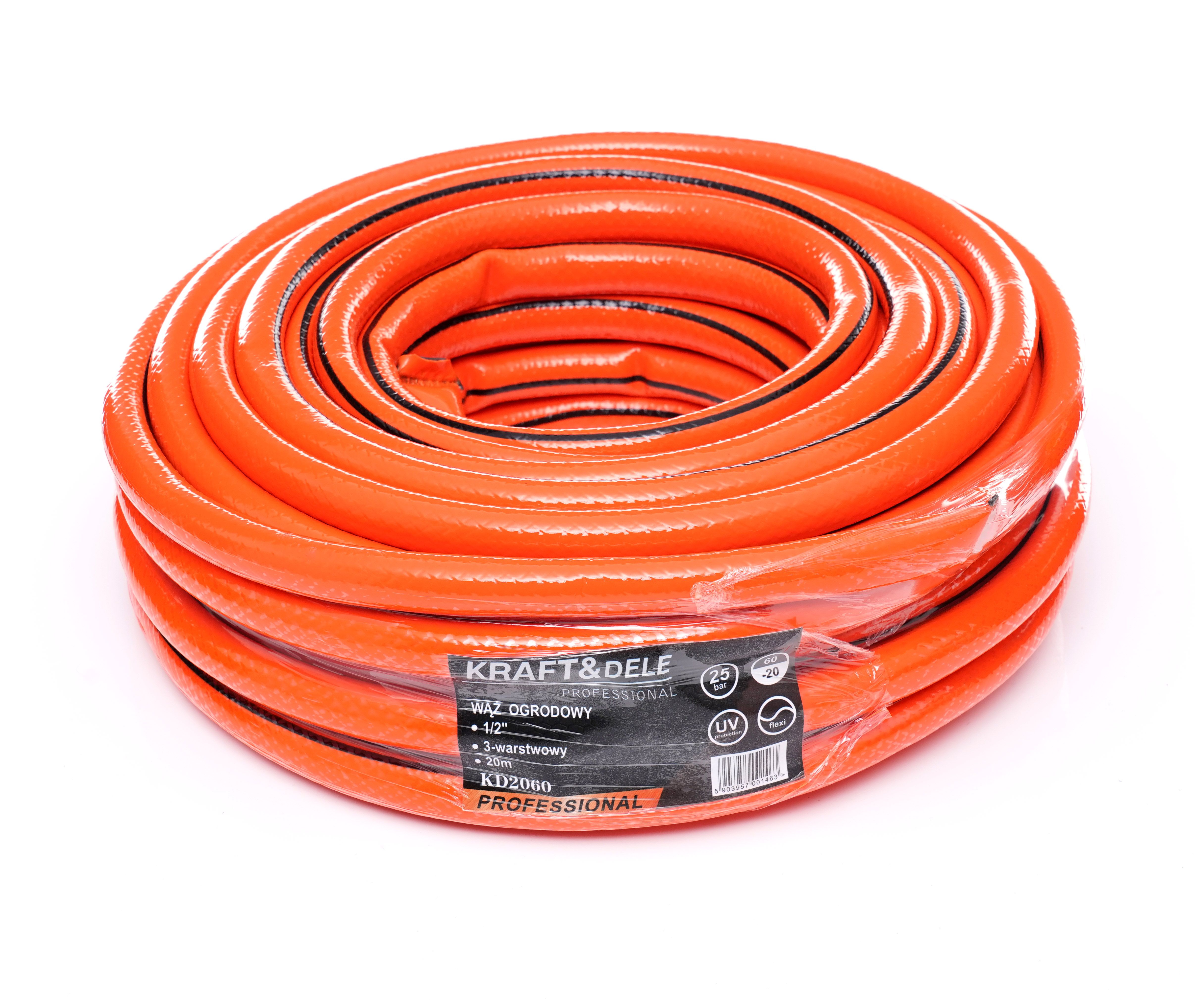Wąż do wody ogrodowy 3-warstwowy 1/2'' 20m KRAFT&DELE KD2060 to solidny wąż do wody do codziennego podlewania oraz do tłoczenia i przepompowywania. Jeśli szukasz praktycznego rozwiązania, które dobrze prowadzi się na zgięciach i jest odporne na skręcanie, model KD2060 będzie trafnym wyborem.