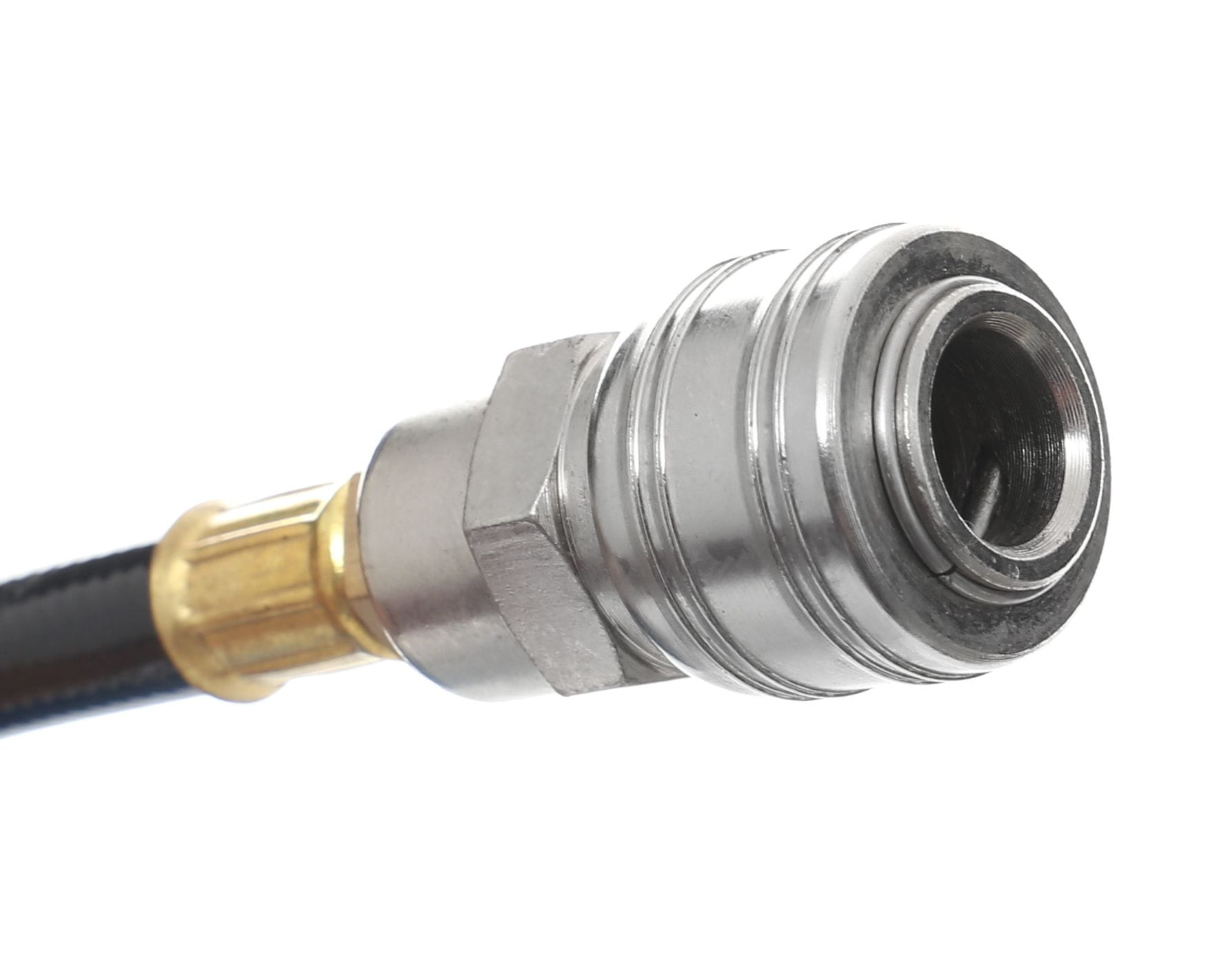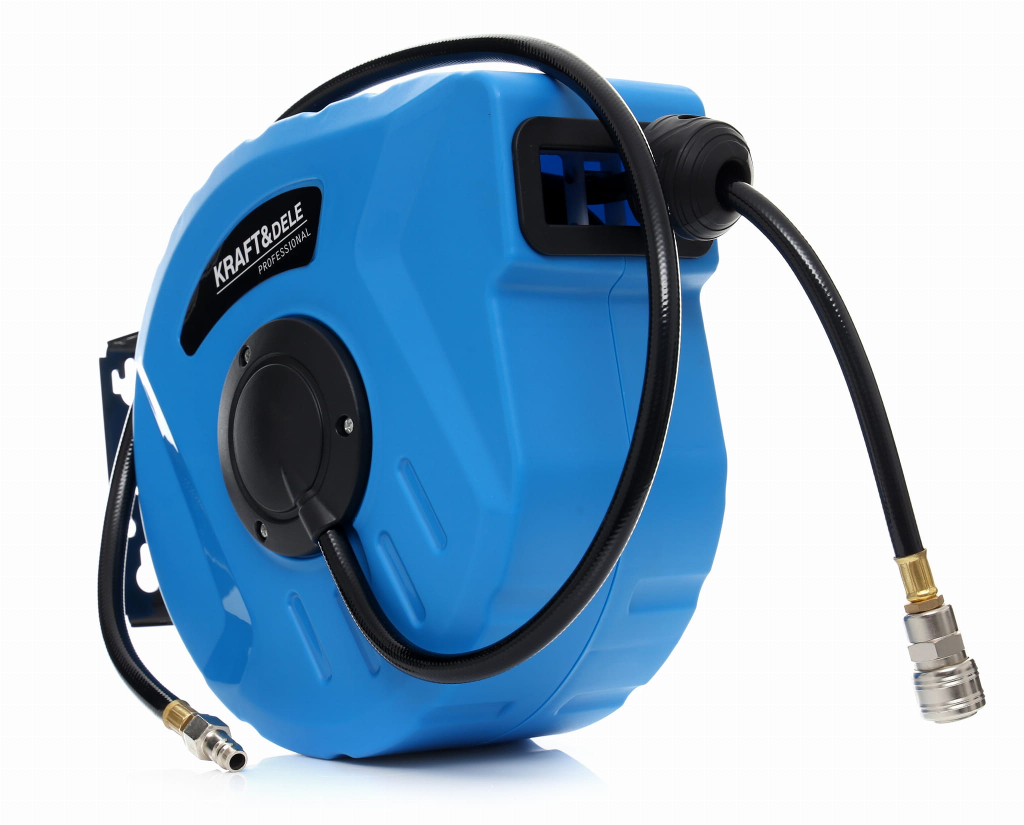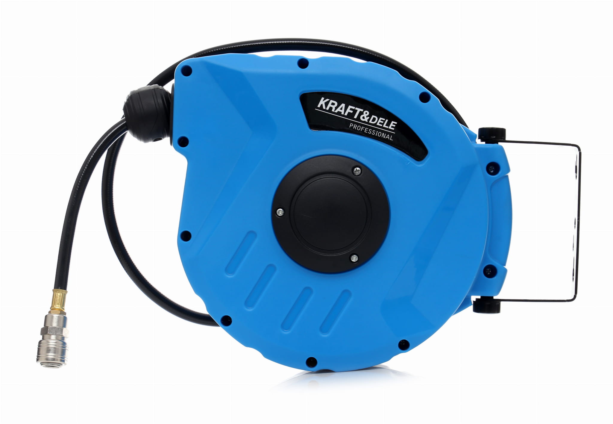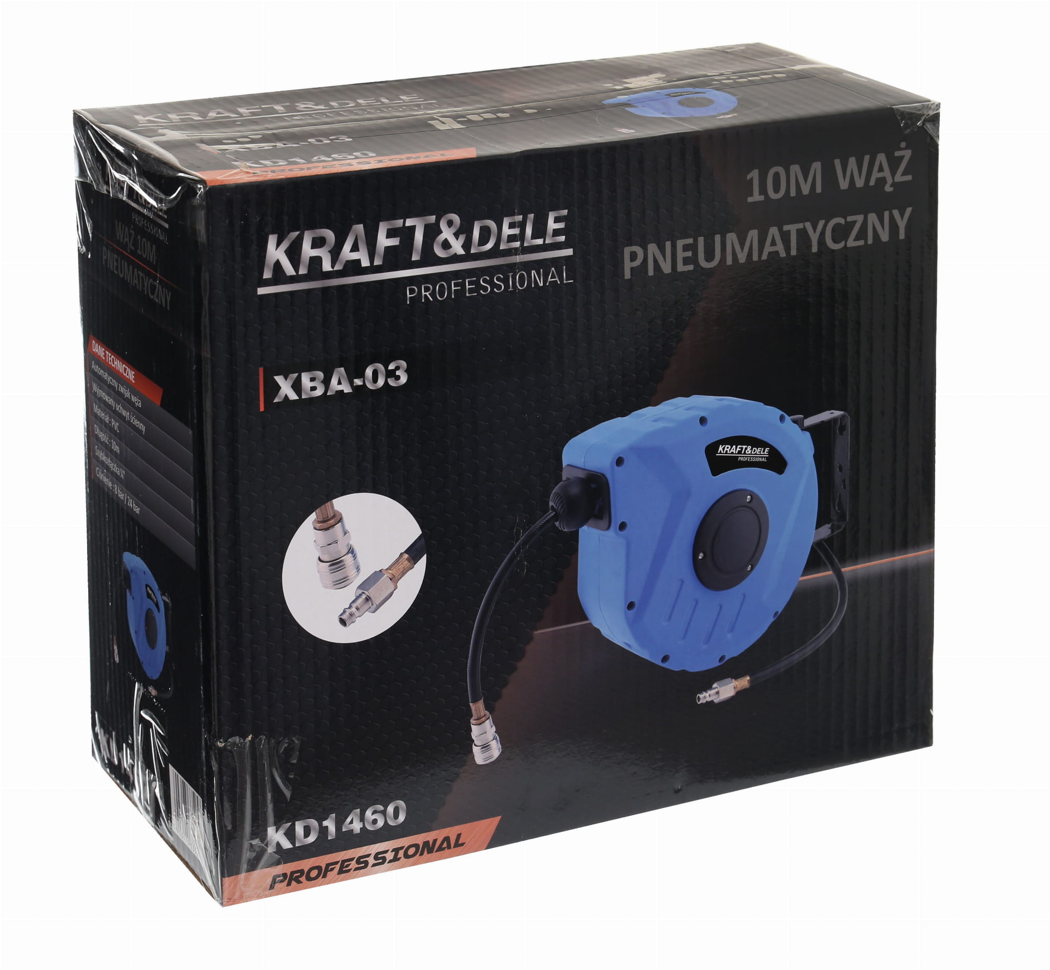 KD1460 to zwijany wąż pneumatyczny z automatycznym mechanizmem powrotu, przeznaczony do współpracy z kompresorami i narzędziami pneumatycznymi. Wąż wykonano z elastycznego PVC i wyposażono w znormalizowaną złączkę 1/4", co zapewnia kompatybilność ze standardowym osprzętem warsztatowym.