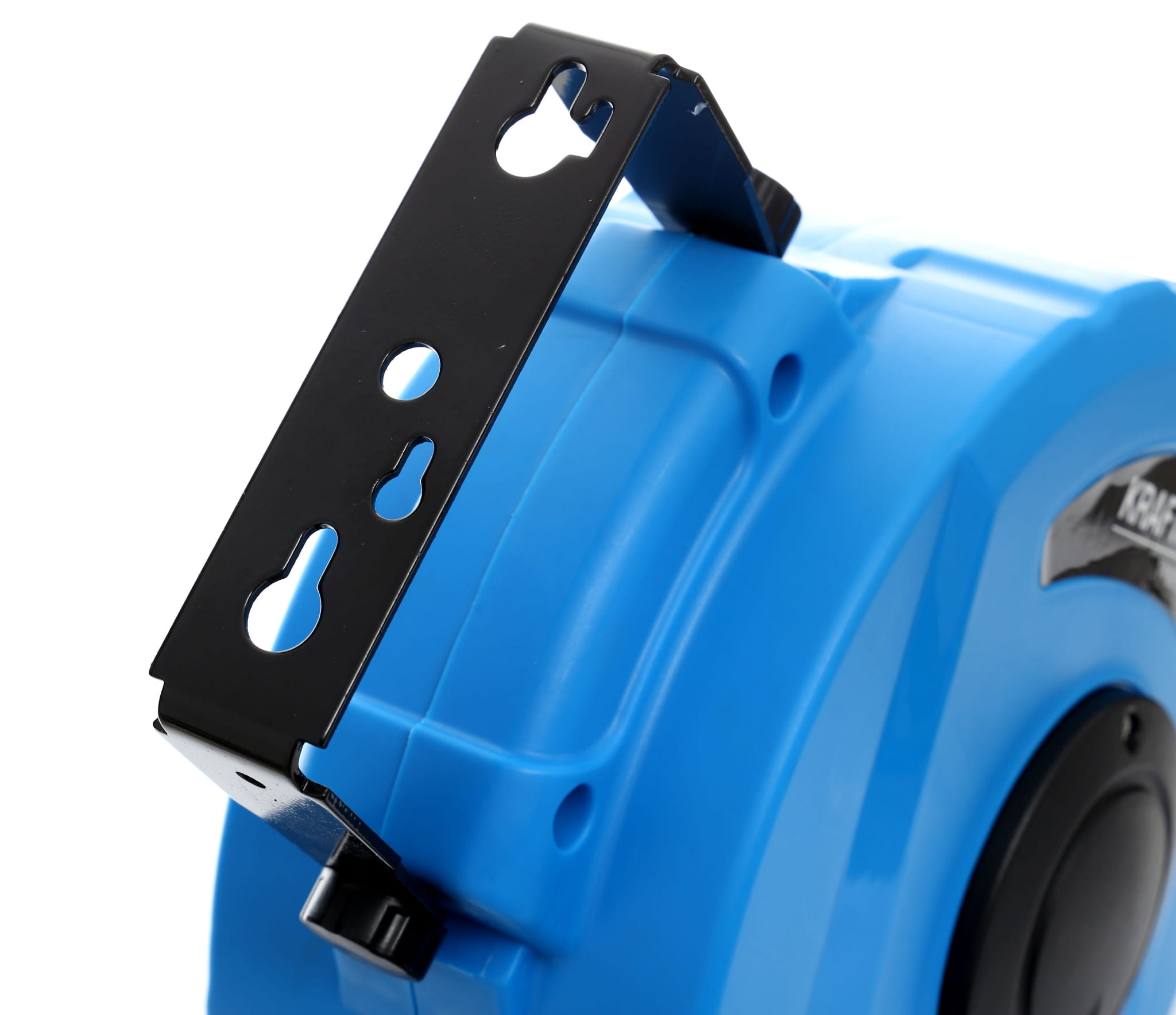 Korpus zwijaka wykonano z PP — materiału odpornego na uderzenia mechaniczne, oleje i powszechne środki warsztatowe. Obudowa chroni mechanizm zwijający przed zanieczyszczeniami.
