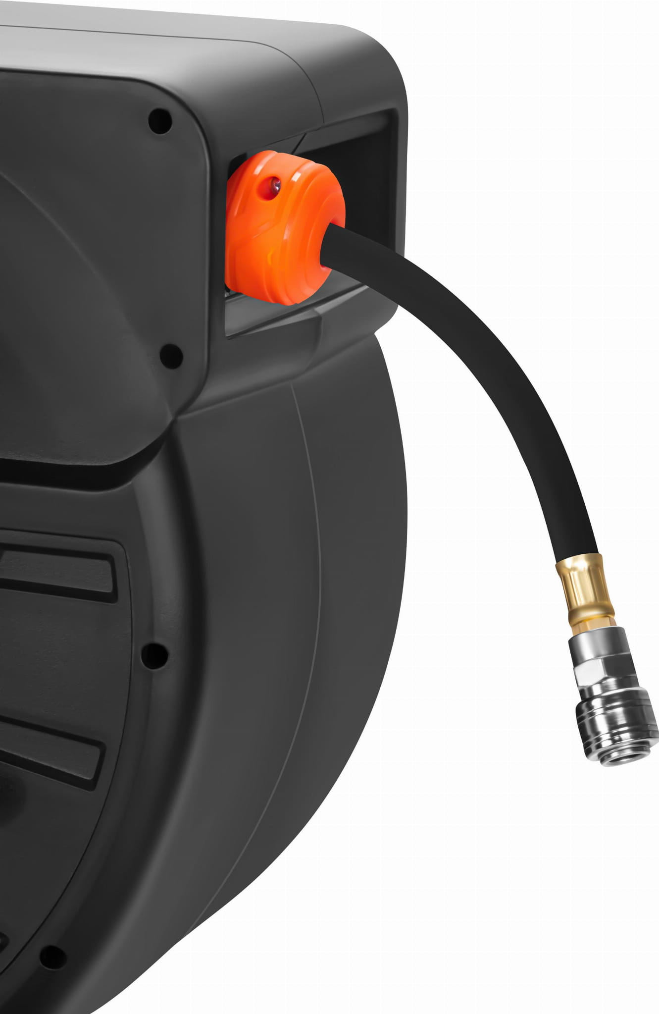 Mechanizm zatrzaskowy umożliwia zatrzymanie węża w dowolnym punkcie rozwinięcia. Wąż pozostaje napięty bez konieczności przytrzymywania, co jest istotne przy pracy z narzędziami pneumatycznymi wymagającymi obu rąk.