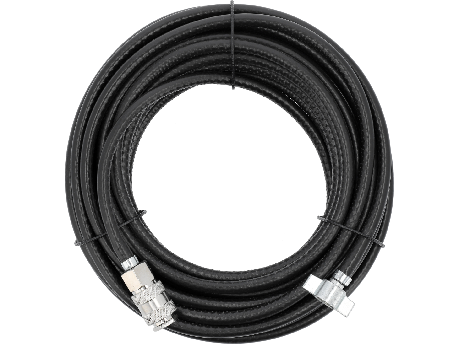 Przewód pneumatyczny o długości 12 metrów z trzywarstwową konstrukcją, przeznaczony do pompowania i przedmuchiwania kół w pojazdach ciężarowych, busach, naczepach oraz ciągnikach rolniczych. Wyposażony w końcówkę motylkową M16x1,5 mm oraz metalową szybkozłączkę uniwersalną.