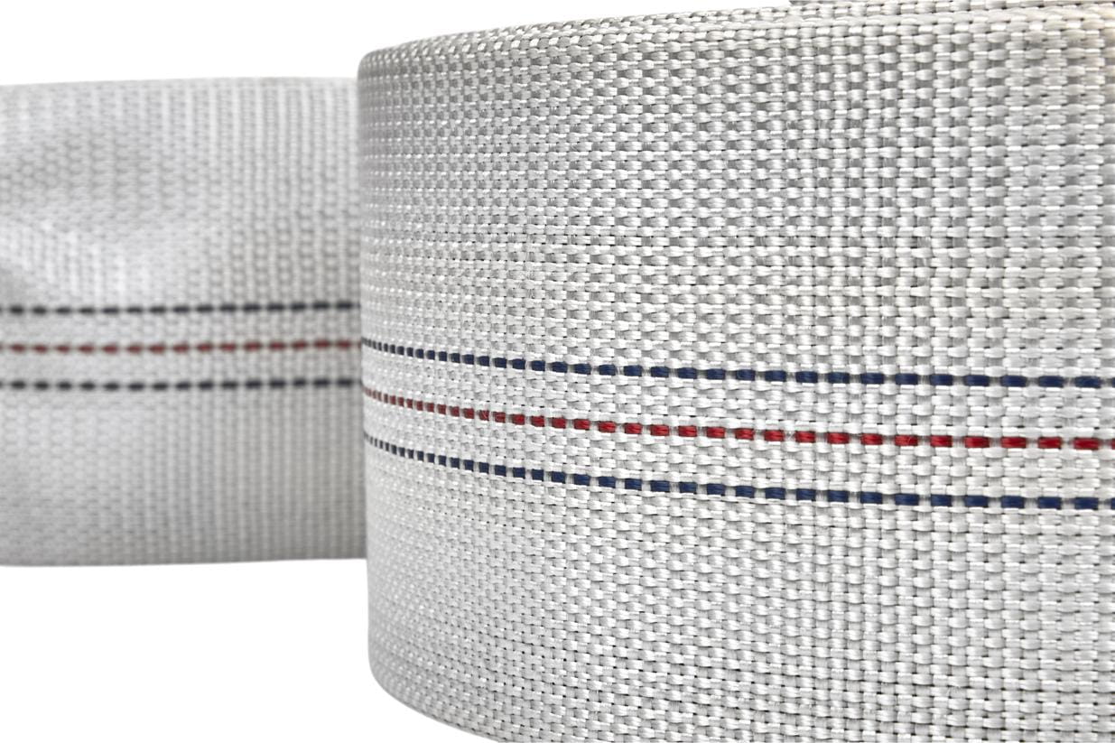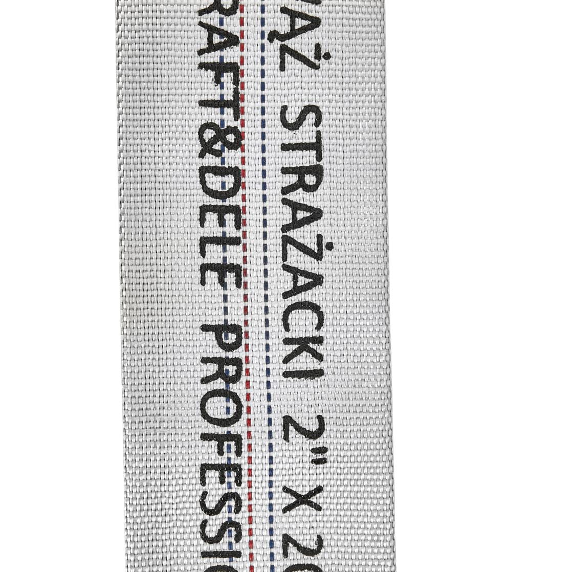 Zewnętrzna warstwa z białej taśmy poliestrowej odpowiada za wytrzymałość mechaniczną i odporność na ścieranie. Wewnętrzna wkładka gumowa (czarna) uszczelnia wąż i zapobiega wchłanianiu przesyłanej cieczy przez oplot, co przekłada się na dłuższą żywotność i higienę eksploatacji.