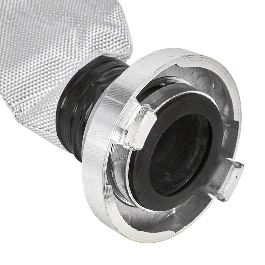 Złączki wykonane ze stopu aluminium umożliwiają szybkie łączenie i rozłączanie węży bez użycia narzędzi. Aluminium jest odporne na korozję i lekkie, co ułatwia transport i montaż w terenie. Złączki są zgodne ze standardowym gwintem stosowanym w pompach spalinowych i elektrycznych klasy 2".